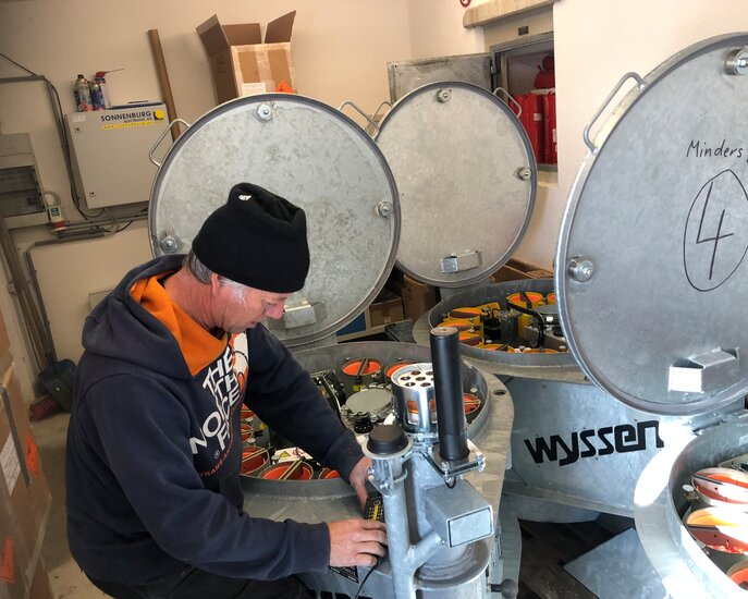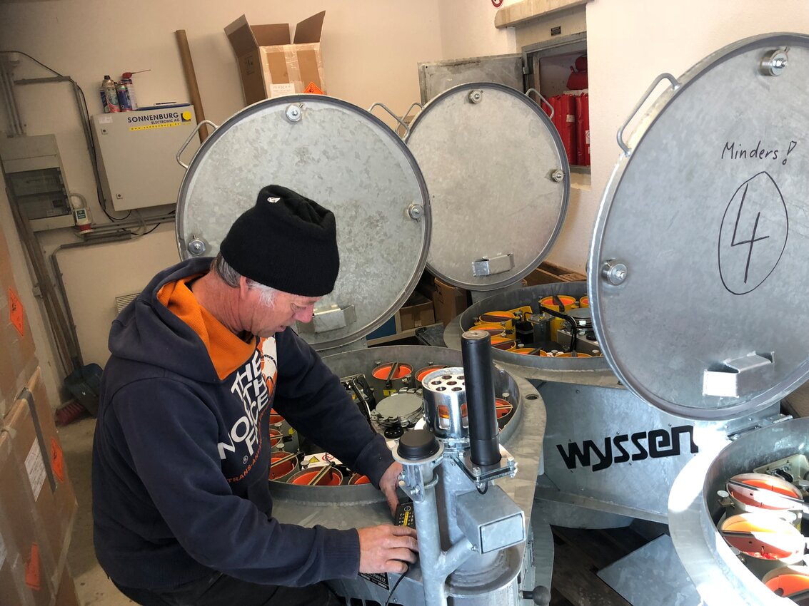 Die Vorbereitungen der 54 Lawinensprengeinrichtungen des Skigebietes in Serfaus beginnen bereits mit Ende der vorherigen Wintersaison. 37 Stück Gazex-Rohre, 7 Wyssen-Sprenganlagen und 10 fixe Sprengeinrichtungen von Inauen Schätti müssen einer Revision unterzogen werden, um während der Wintersaison für ein sicheres Skivergnügen zu sorgen. Dabei werden die Lawinensprengstoffe jeweils abgebaut und demontiert, alle Einrichtungen revidiert und im Herbst wieder befüllt, um rechtzeitig einsatzbereit zu sein.