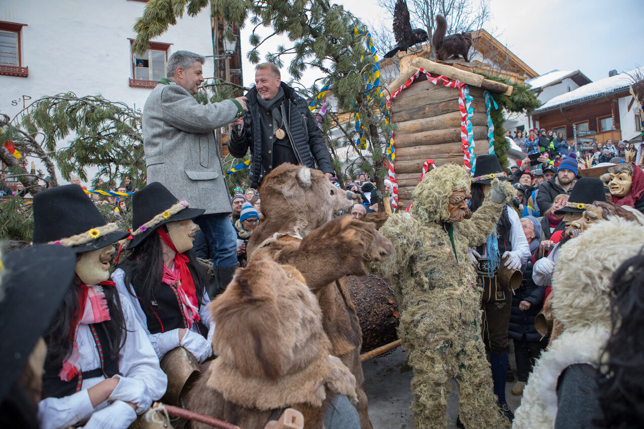 Christoph: Nach dem Umzug kommt der große Auftritt des Fisser Bürgermeisters. Am Fonnes wird der Blochbaum versteigert. Um wie viel wurde der Blochbaum 2018 versteigert und was passiert mit dem Geld bzw. dem Baum?
