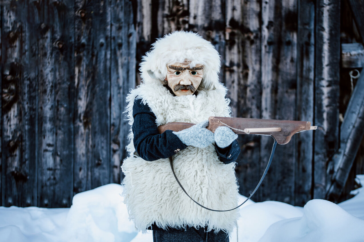 Wer beim Blochziehen in welche Rolle schlüpfen darf, wird nach Alter bestimmt. Anders als bei den Großen gibt es bei den Kindern auch eine Zwergengruppe, in der alle Erstklässler mitlaufen. Je älter die Kinder werden, desto verantwortungsvoller werden auch die Rollen, die sie verkörpern. So darf Manuel Kofler, der in die erste Klasse der Mittelschule geht, ein Bärentreiber sein. „Ich muss versuchen, den Bären zu bändigen und den Miasmann einzufangen.“ Nur mit den vereinten Kräften der Bärentreiber kann das Blochziehen weitergehen.