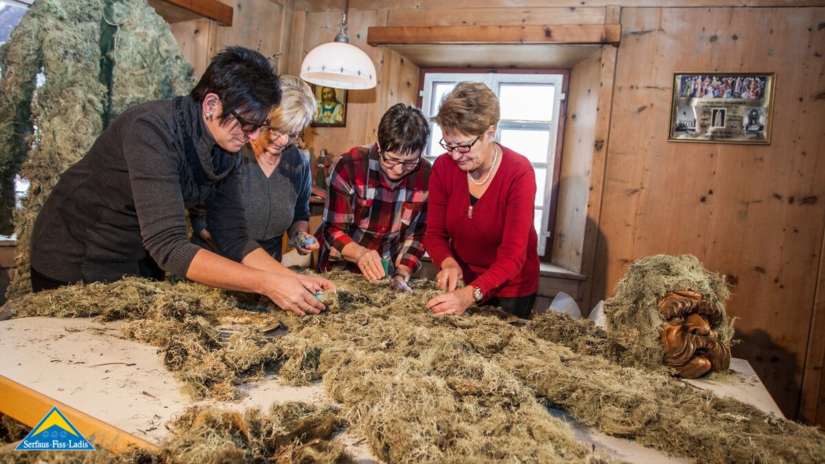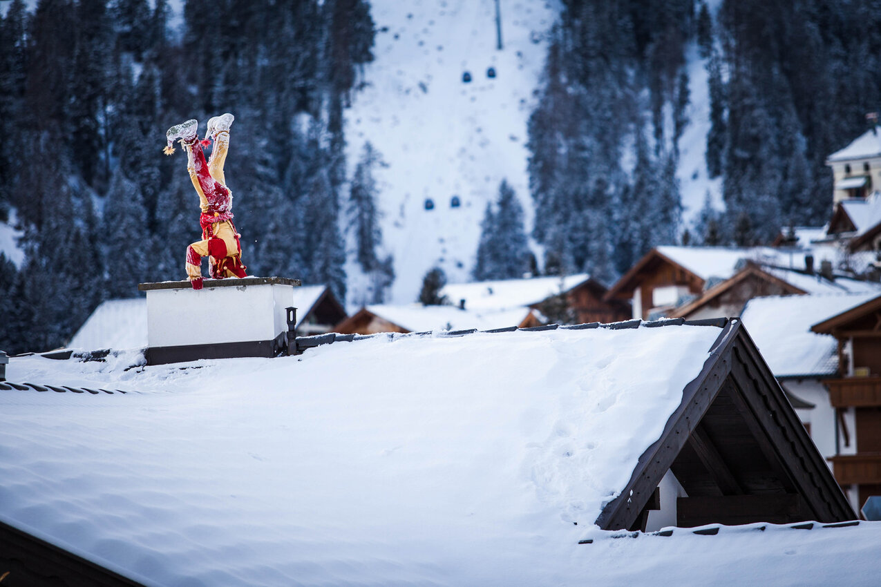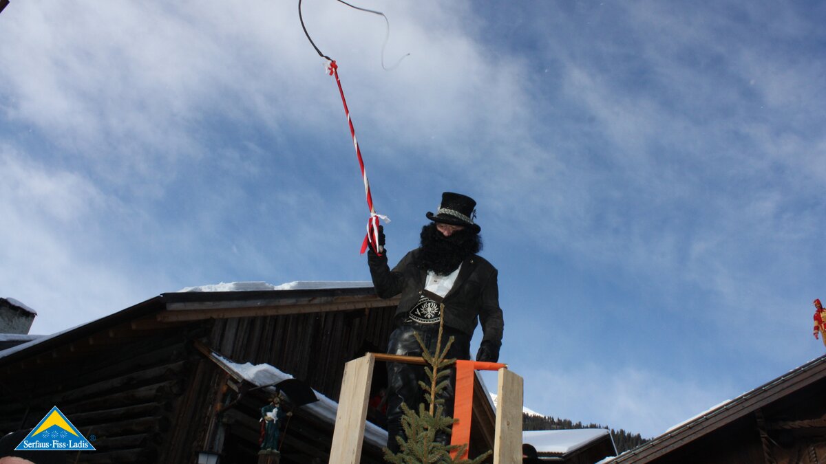 Auch dem Bajatzl wird beim Fisser Blochziehen so einiges an körperlicher Leistung abverlangt. Eine gute Vorbereitung, gute Kondition und Koordination sowie Trittsicherheit und Mut sind Voraussetzungen, um diese Rolle bestmöglich zu verkörpern.