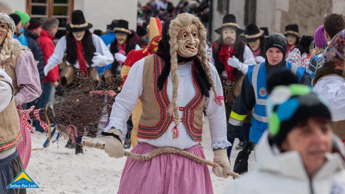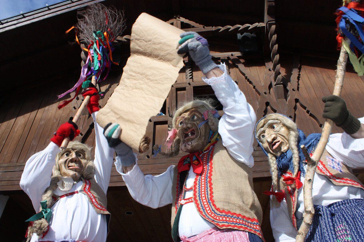 Sie repräsentieren auch den Winter, der den Menschen früher sehr zu schaffen machte. Sie machen mit Geschrei und schwingenden Besen Platz für die nachfolgenden Teilnehmer, tanzen zu der Musik und drängen die Zuseher zurück.
