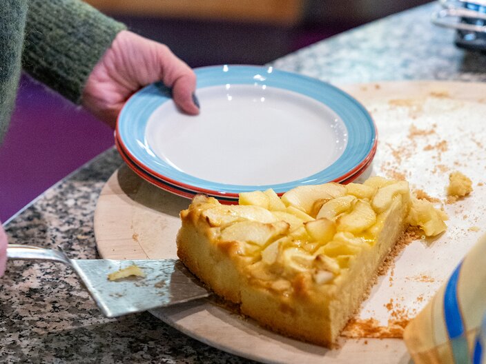 Endlich steht die Auffahrt mit der neuen Komperdellbahn an. Während der Fahrt zur Zwischenstation erzählt Wolfi lachend, dass die Führung noch beliebter wurde, seit am Ende Kaffee und Kuchen warten. „Ob es da wohl einen Zusammenhang gibt?“, meint er augenzwinkernd. Die Urlauberfamilie aus Deutschland, die mit uns in der Gondel sitzt, erinnert sich währenddessen an die alte Bahn. „Unser Sohn hat die grauen Gondeln anfangs sehr vermisst – aber mittlerweile findet er die neuen viel cooler“, erzählt der Vater.
