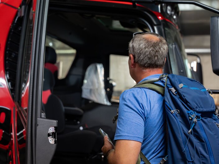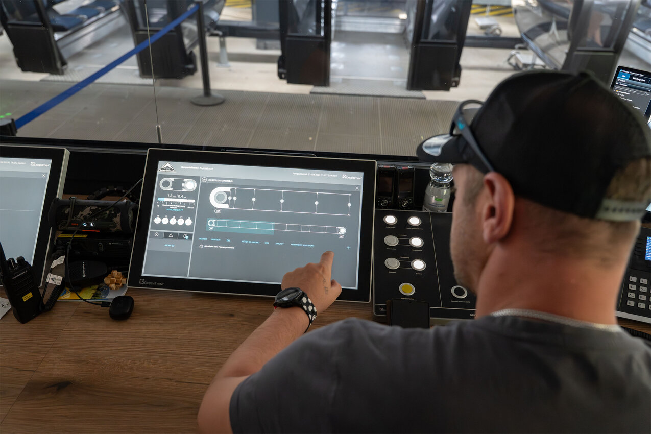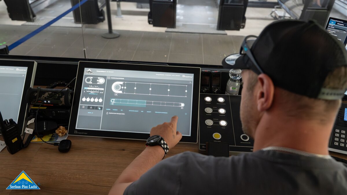 Oben an der Zwischenstation dürfen wir wieder in die Zentrale und den Mitarbeitern über die Schulter blicken. Die Komperdellbahn läuft mit dem neuen AURO-System vollautomatisch. Zu Höchstzeiten transportiert sie 3.000 Personen pro Stunde. „Der Endausbau wären 3.500 Personen – dafür bräuchten wir 13 Gondeln mehr. Jede kostet aber 42.000 Euro, das ist vielleicht in den nächsten Jahren soweit“, sagt Wolfi. Insgesamt, so berichtet er, habe der Neubau der Komperdellbahn samt Gebäuden 60 Millionen Euro gekostet.