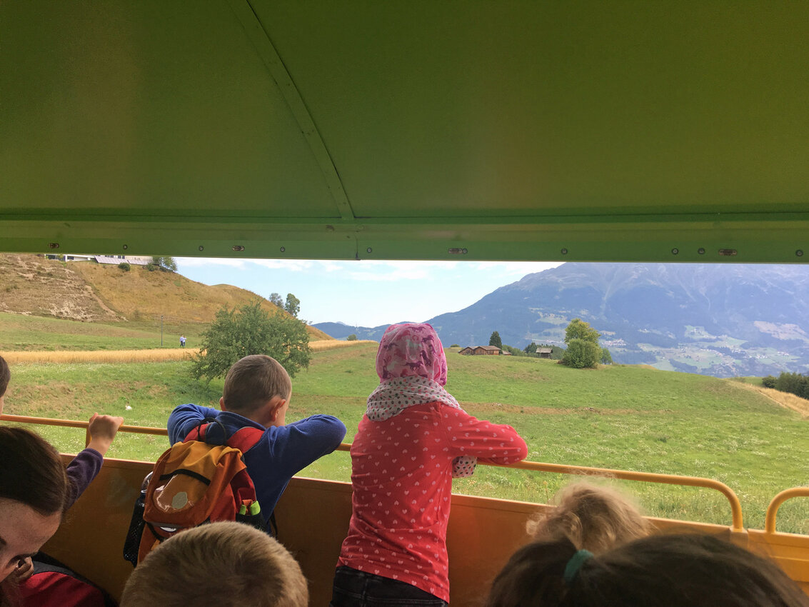 Nachdem wir uns schweren Herzens auch von den schönen Pferden verabschiedet hatten, wartete noch ein weiteres, ganz besonderes Erlebnis auf uns. Den Weg zurück zum Mini&Maxi Clubhaus mussten wir nämlich nicht zu Fuß bewältigen – nein – uns holte die Flotte Berta ab. Die Flotte Berta ist ein Gefährt der besonderen Art: Der einstige Traktor wurde dem Maskottchen Berta der Kuh nachempfunden und ist nicht nur bei den Kindern sehr beliebt. Wir konnten es kaum erwarten, Fahrt mit ihr aufzunehmen und zurück zum Kinderclub zu düsen.