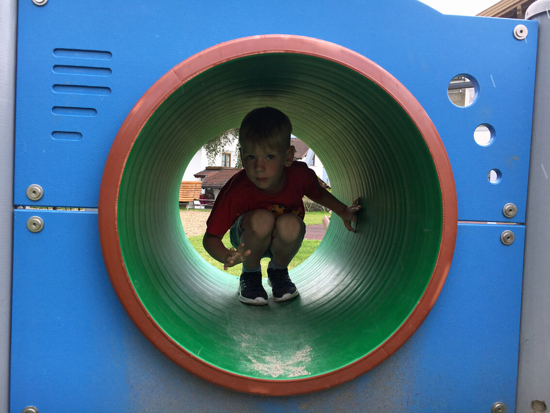 Sobald die Muffins in ihre Förmchen gefüllt und im Ofen platziert waren, konnten die Kinder entweder frei spielen, oder an lustigen Gemeinschaftsspielen teilnehmen - das verkürzte die laaaaaaange Wartezeit auf den süßen Genuss. Der Spielplatz beim Mini&Maxi Clubs ist ein wahrhaftiges Paradies für Kinder, denn dort befinden sich unter anderem Klettergerüste, Rutschen und ein großer Sandspielplatz. So verging die Zeit wirklich im Flug, bis uns der verführerische Duft der süßen Köstlichkeiten zurück in die Backstube lockte. Mhmm… als wir die ersten Bissen genossen, waren wir uns alle einig: die Arbeit hatte sich definitiv gelohnt! Außerdem schmecken Muffins mit Eiern von Hühnern, die man zuvor höchstpersönlich besucht hatte, einfach noch besser! Nach der Kostprobe durften die Kinder noch ein wenig spielen, bevor "Feierabend" war und die Eltern kamen, um ihre Lieblinge abzuholen. Müde, aber überglücklich, erzählten die Kinder in aller Ausführlichkeit, was sie heute alles erlebt hatten. Vorteil für die Eltern: Wer viel unterwegs war, schläft auch gut ;-)