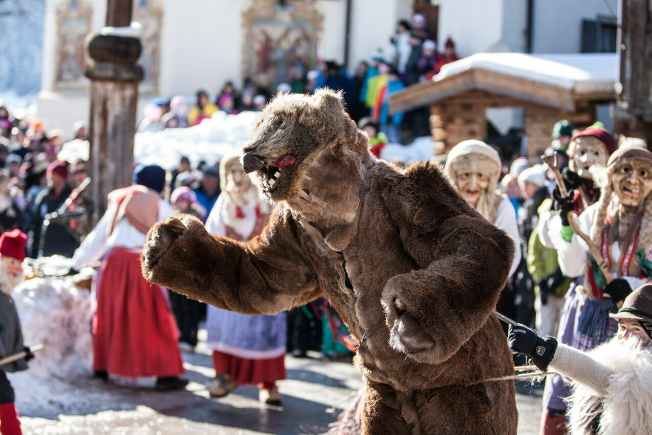 Beim Platz-Brunnen war der erste Halt. Da holten wir den Bären zu Hilfe. Schallner- und Hexentanz auf der Bühne boten ein schönes Bild. Beim Toalstock kam der Miasmann dazu und flott ging es in die Vorstatt. Dort bekamen alle Fasnachtler eine Stärkung. Spannend war der neue Weg bei der Antoniuskapelle hinunter. Es lief perfekt. Am Fonnes wurde der Baum vom Bürgermeister versteigert. Dann ging es zurück ins Kulturhaus.