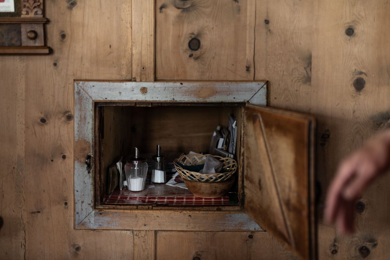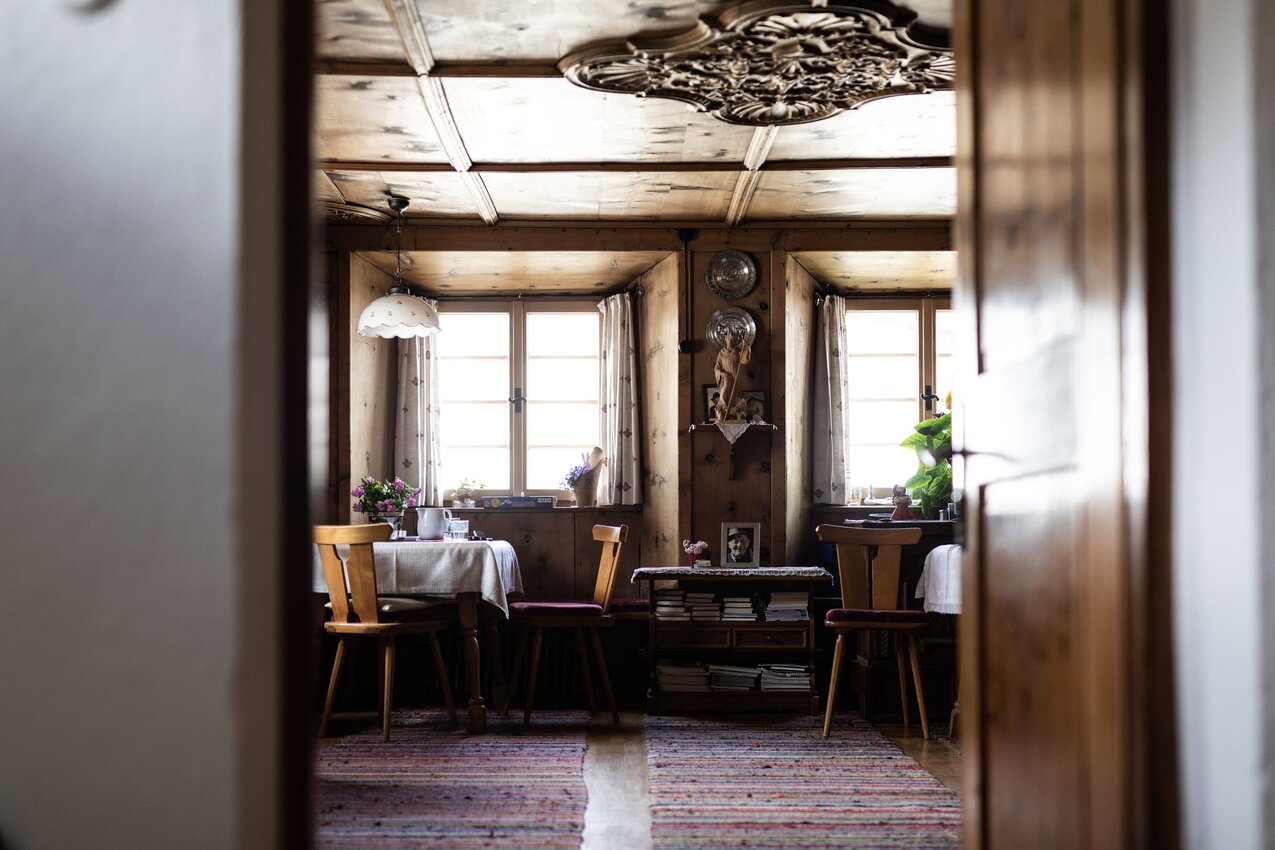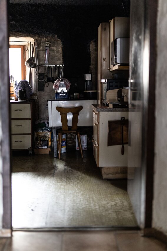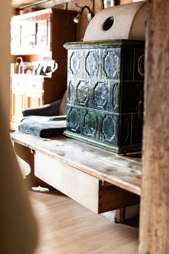 "Früher war sogar noch eine Luke über dem Ofen, damit die Wärme in das darüber liegende Zimmer aufsteigen konnte. Es gab ja noch keine Zentralheizung. Heute hänge ich über dem Ofen gerne die Wäsche zum Trocknen auf. Das ist ein Trick, denn dann ist die Luft in der Stube angenehmer und es riecht gut.“