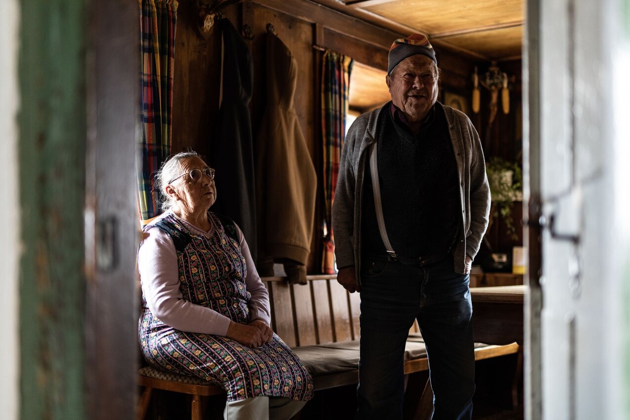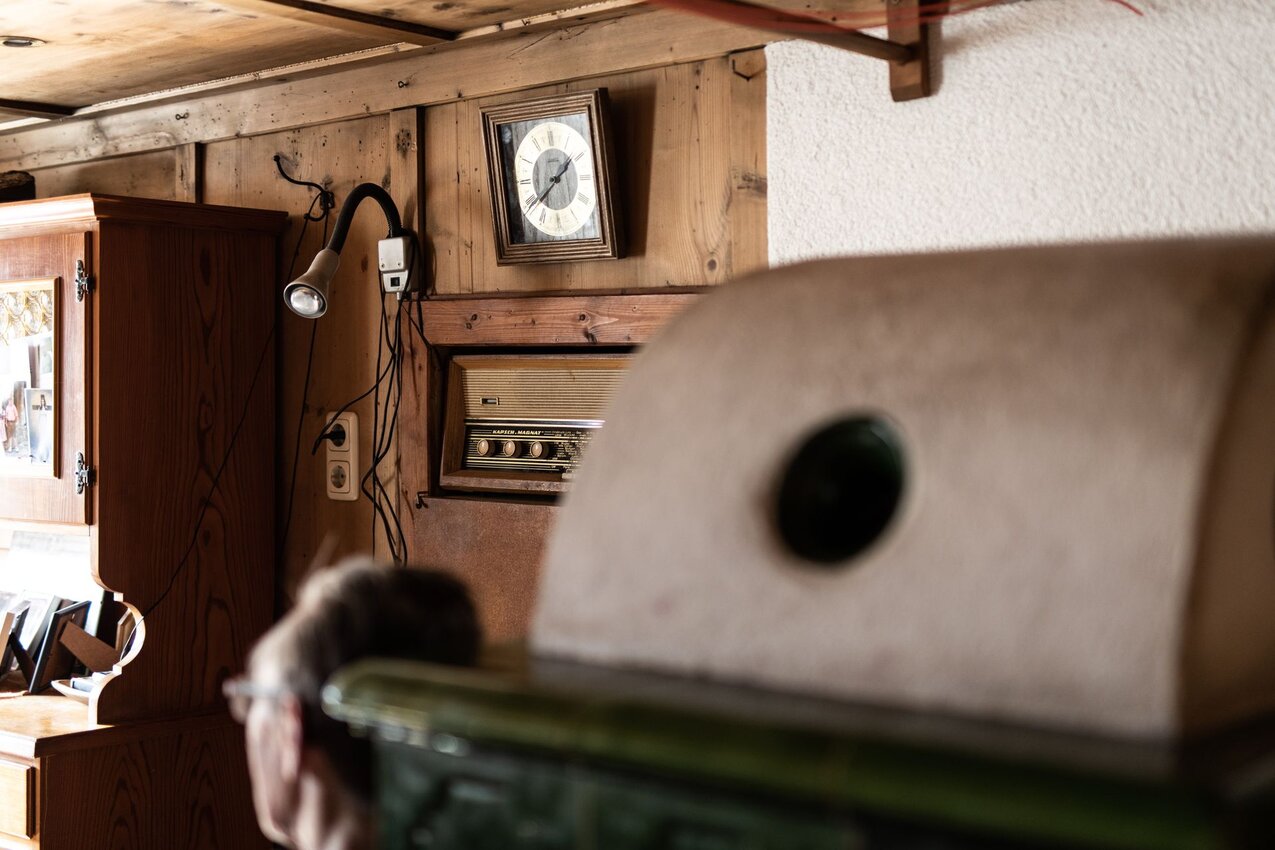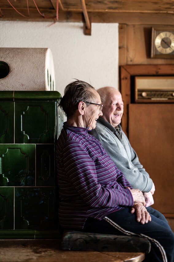 „Inkenta“, so sagt man am Plateau, wenn man den Ofen einheizt. Und wenn es dann gemütlich warm wird in der Stube, dann lockt die Ofenbank. Frieda, Hermann, Maria, Rosmarie und Alfred haben die Stubentür geöffnet und zeigen ihr Lieblingsplätzchen am Ofen.