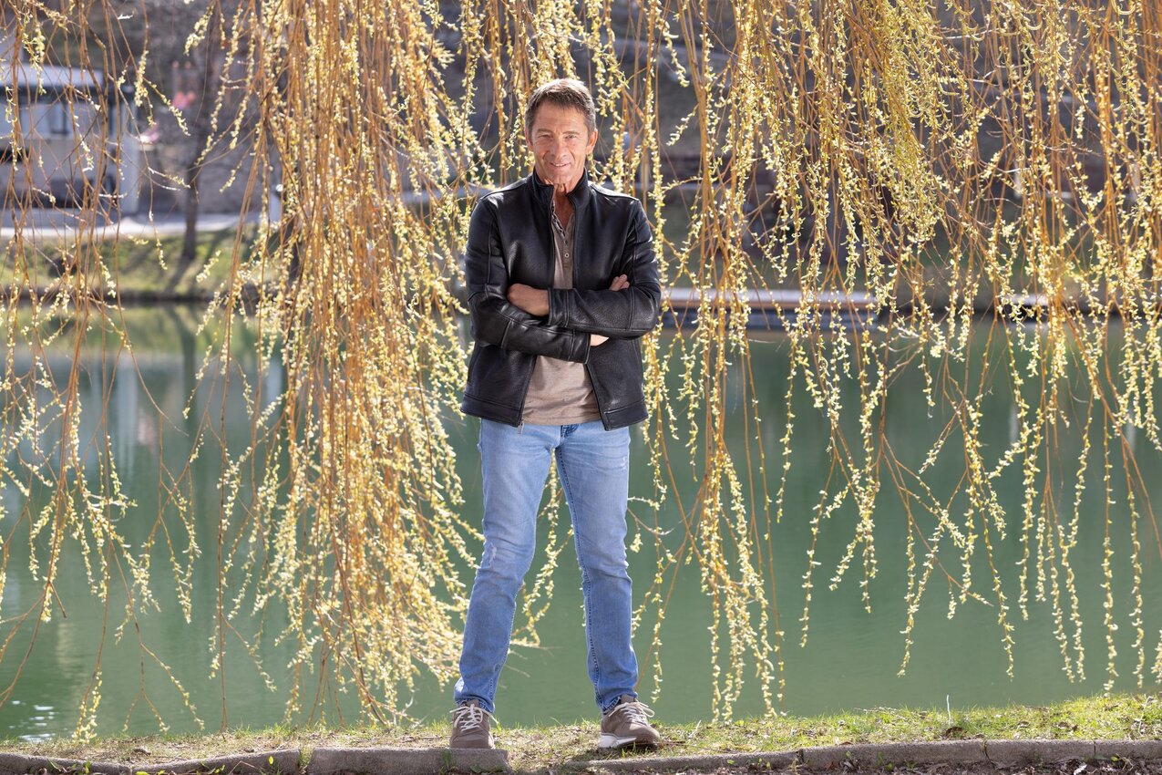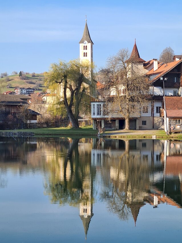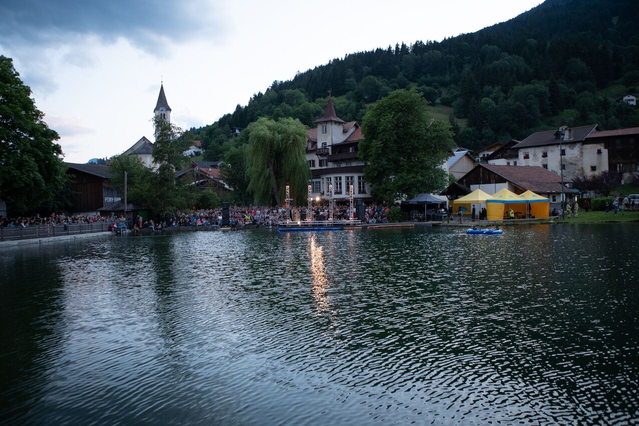Ich treffe den Tiroler Gilbert Soukopf dort, wo am 13. Juli 2022 sein SOUND durch die MOUNTAINS von SFL erklingen wird: am Lader Schlossweiher.