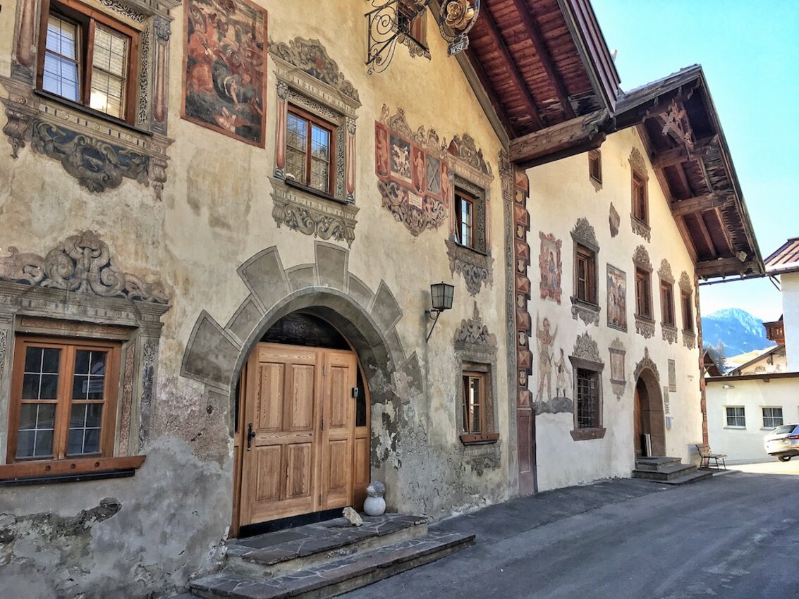 Was mich bei meinem allerersten Besuch dieses wunderschönen Ortes in Entzücken versetzte, war das Dorfzentrum. Uralte Häuser mit wunderschönen Fresken bilden ein einzigartig wunderschönes Ensemble. Man hat teilweise das Gefühl, die Zeit sei hier stehen geblieben. Vermutlich auch deshalb, weil die Gemeindebürger ganz offensichtlich viel dafür übrighaben, das mittelalterliche Flair zu erhalten. Außerdem verfügt die kleine Gemeinde über ein vom Chronisten Robert Klien erstelltes, geradezu sensationell gestaltetes Dorfbuch.