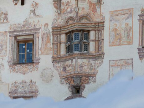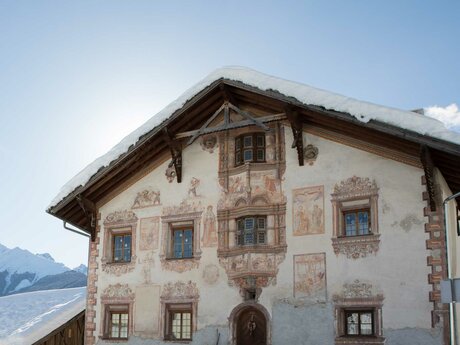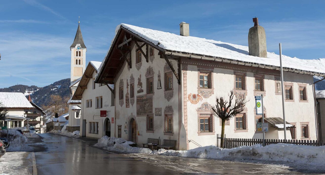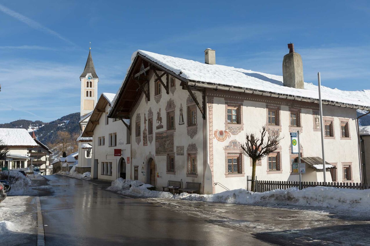 Das Rechelerhaus: das älteste bemalte Haus im Oberen Gericht. Das über und über mit Fresken bemalte Rechelerhaus ist spätromanischen Ursprungs. Es zählt heute zu den bedeutendsten Profanbauten des Oberen Gerichtes und zu den schönsten seiner Art in Tirol.