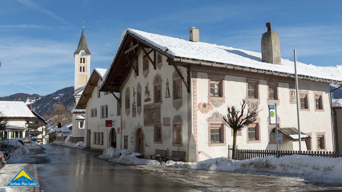 Zwei weitere uralte Häuser zieren - etwas abseits der heutigen Straße - das Ortszentrum. Das Gebäude des Gemeindeamtes und das ehemalige Gasthaus Rose. Vor allem das Gemeindehaus belegt eindrucksvoll das Bestreben der Gemeinde Ladis, ihr uraltes Kulturgut auf alle Fälle zu erhalten. Denn das Haus wurde - gemeinsam mit dem angebauten Gasthof Rose von der Gemeinde aufgekauft, abgetragen und neu aufgebaut. Wobei die Baumassen, also die Kubatur, erhalten geblieben ist. Ebenso wie die Fresken, die erst abgelöst und dann auf den Neubau übertragen worden sind. Respekt!