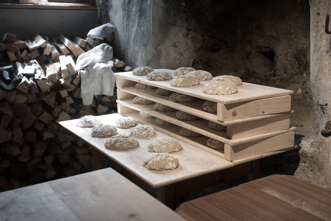 Die Backstube im prächtigen Rechelerhaus in der Dorfstraße 7 in Ladis ist ein Erlebnis für alle Sinne. Im Backofen knistert das Feuer. Die Hitze treibt dir die Schweißperlen auf die Stirn. Die Enge vermittelt ein Gefühl von erdiger Betriebsamkeit. Nebst der archaischen Optik des imposanten Ofens sind es aber vor allem die Gerüche, die dir in nachhaltiger Erinnerung bleiben. Denn die harzigen Noten des Brennholzes und natürlich die Würze des Brotes in sämtlichen seiner Entwicklungsstadien vom Teig bis zur fertigen Backware verschmelzen hier zu einer Art aromatischen Gesamtkunstwerk. Kein Wunder, wenn du dich versucht fühlst, kurz die Augen zu schließen, um diesen speziellen Duft in seiner unvergleichlichen Bodenständigkeit zu verinnerlichen.