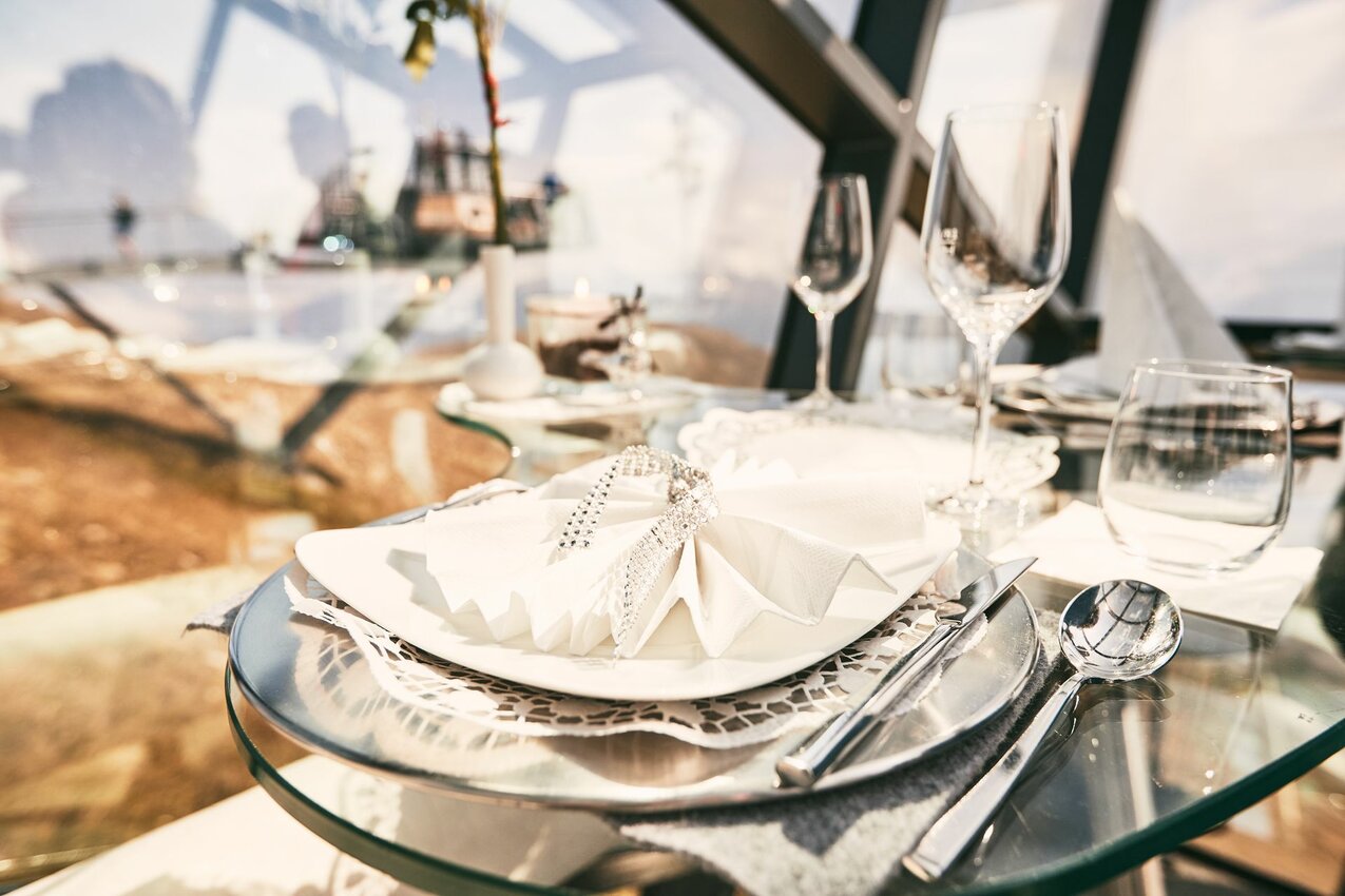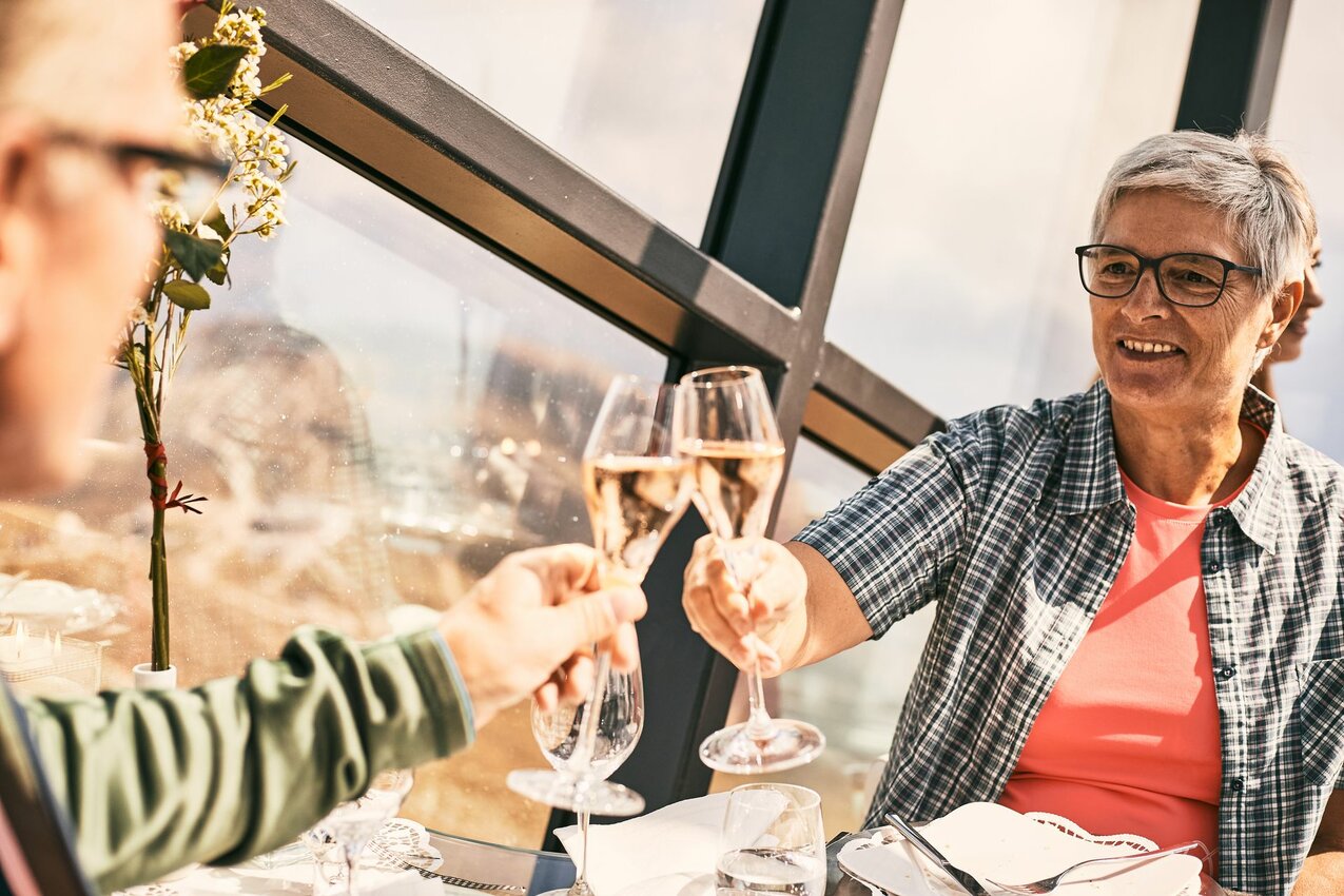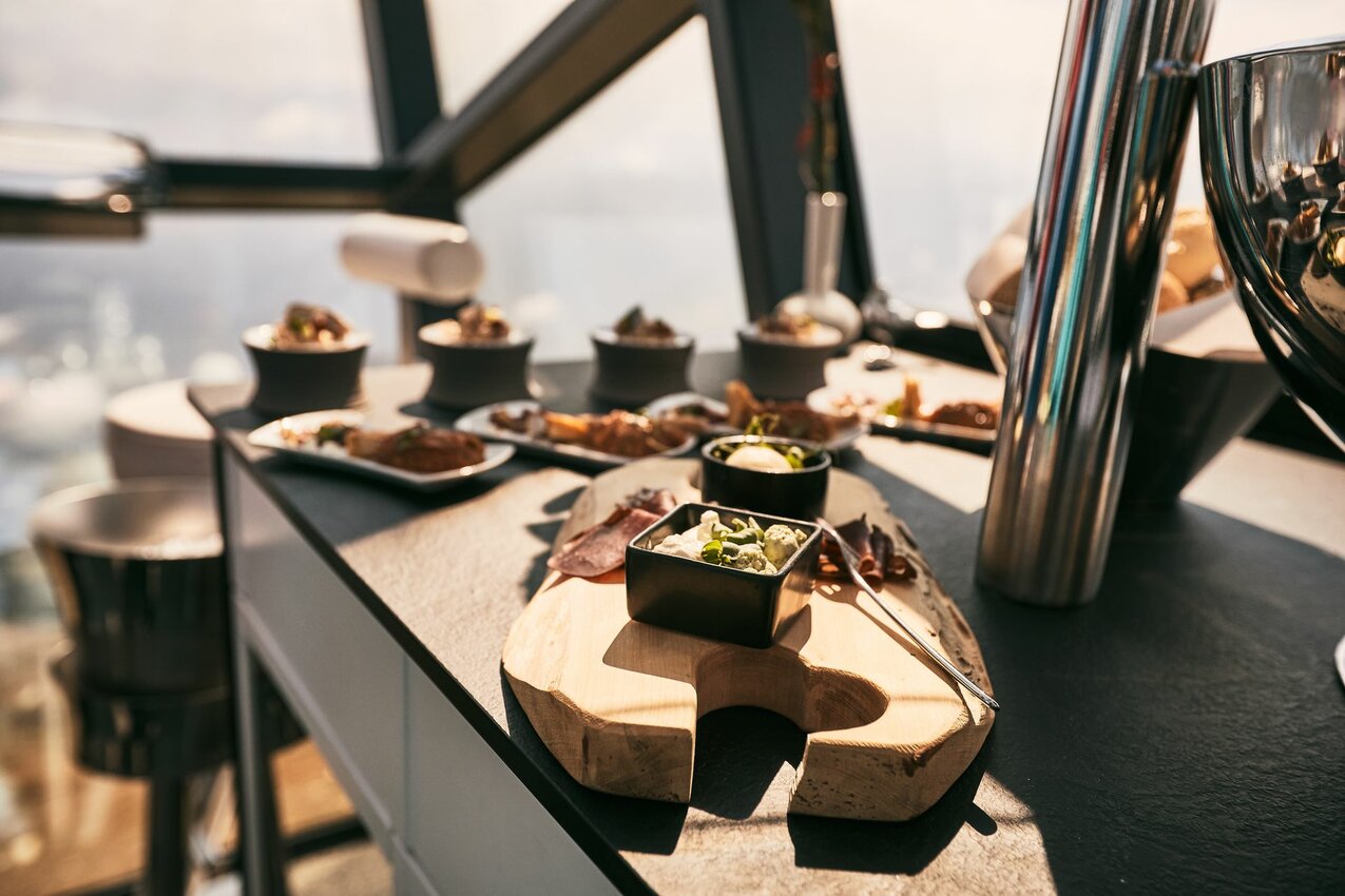 Essen mit Aussicht wurde uns beim Buchen versprochen. Zu viel versprochen? Nein, denn mehr Aussicht geht nicht: Der 360-GRAD-RUNDBLICK ist wirklich atemberaubend. Das musst du einfach mit eigenen Augen erleben. Auf diesen einzigartigen Moment müssen wir doch gleich anstoßen. Hinweis: Die Getränke sind nicht im Preis inbegriffen. PROST!
