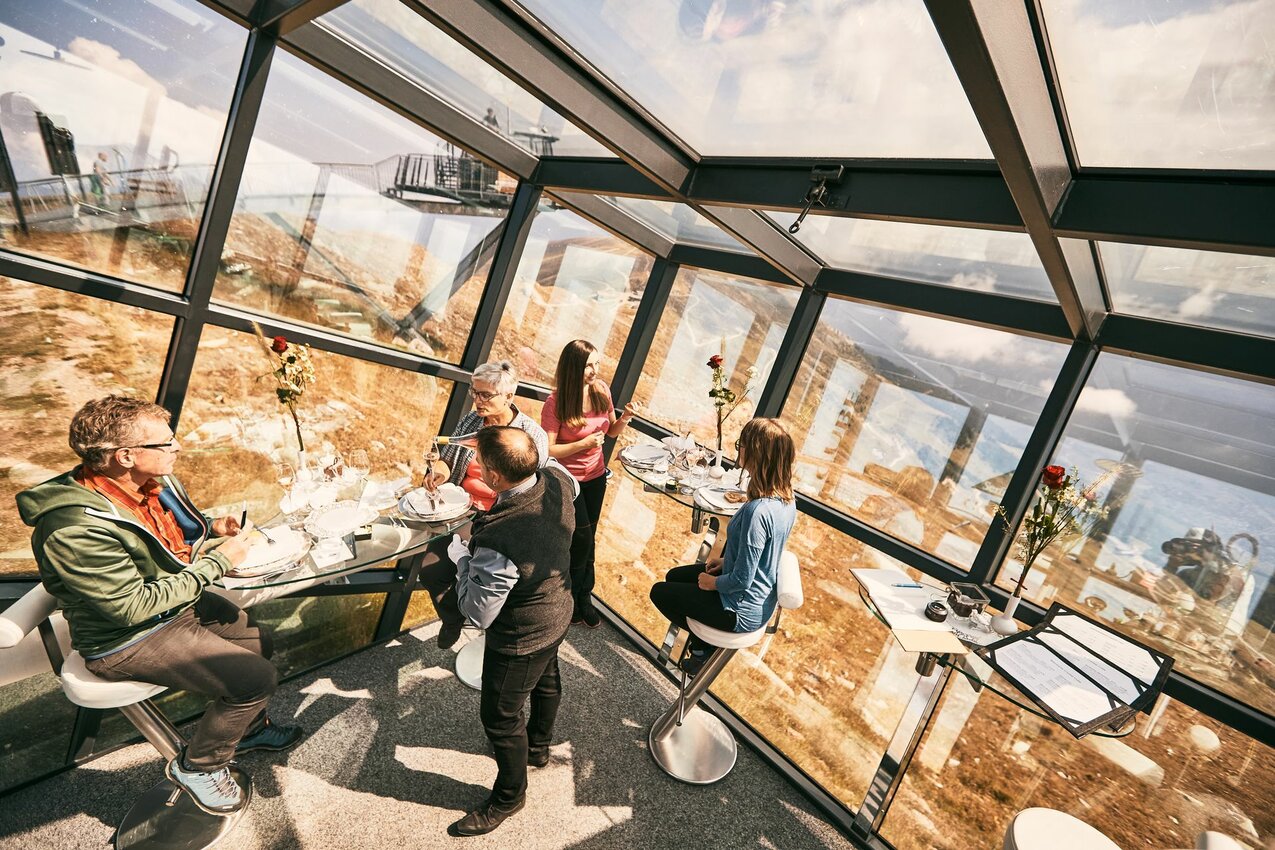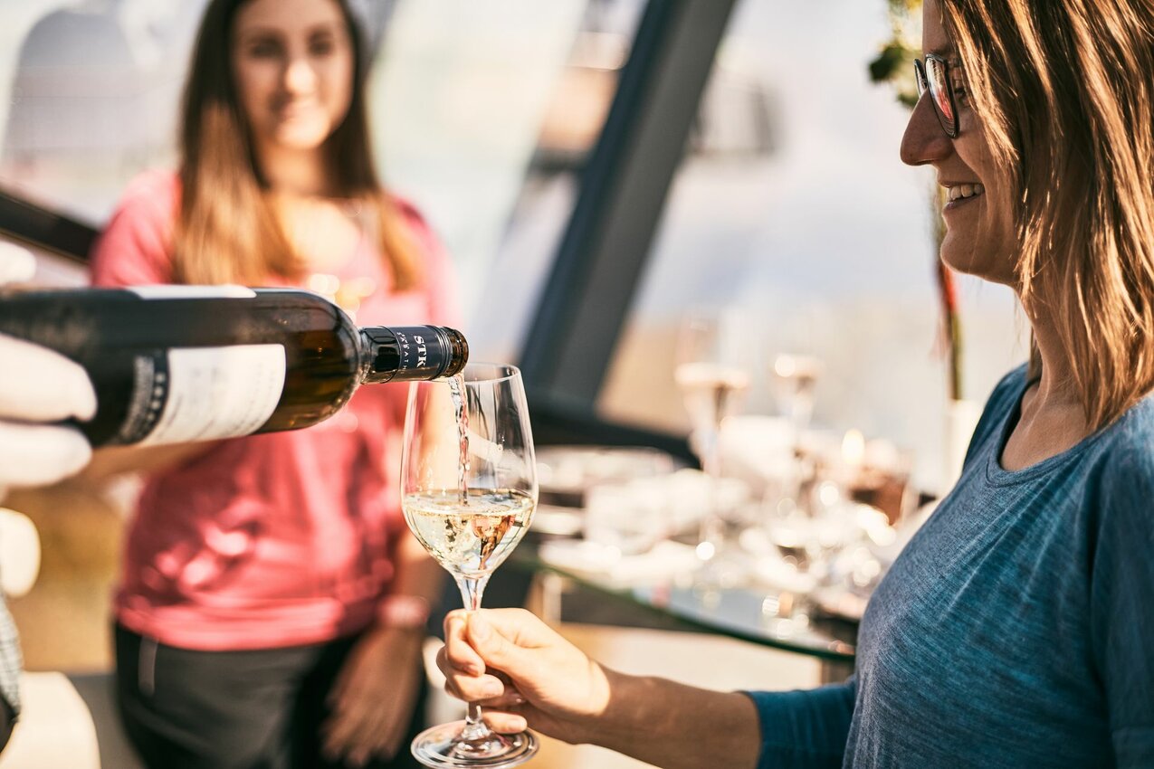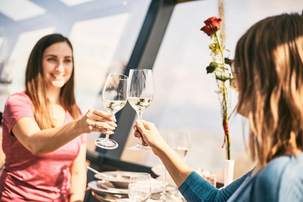 Essen mit Aussicht wurde uns beim Buchen versprochen. Zu viel versprochen? Nein, denn mehr Aussicht geht nicht: Der 360-GRAD-RUNDBLICK ist wirklich atemberaubend. Das musst du einfach mit eigenen Augen erleben. Auf diesen einzigartigen Moment müssen wir doch gleich anstoßen. Hinweis: Die Getränke sind nicht im Preis inbegriffen. PROST!