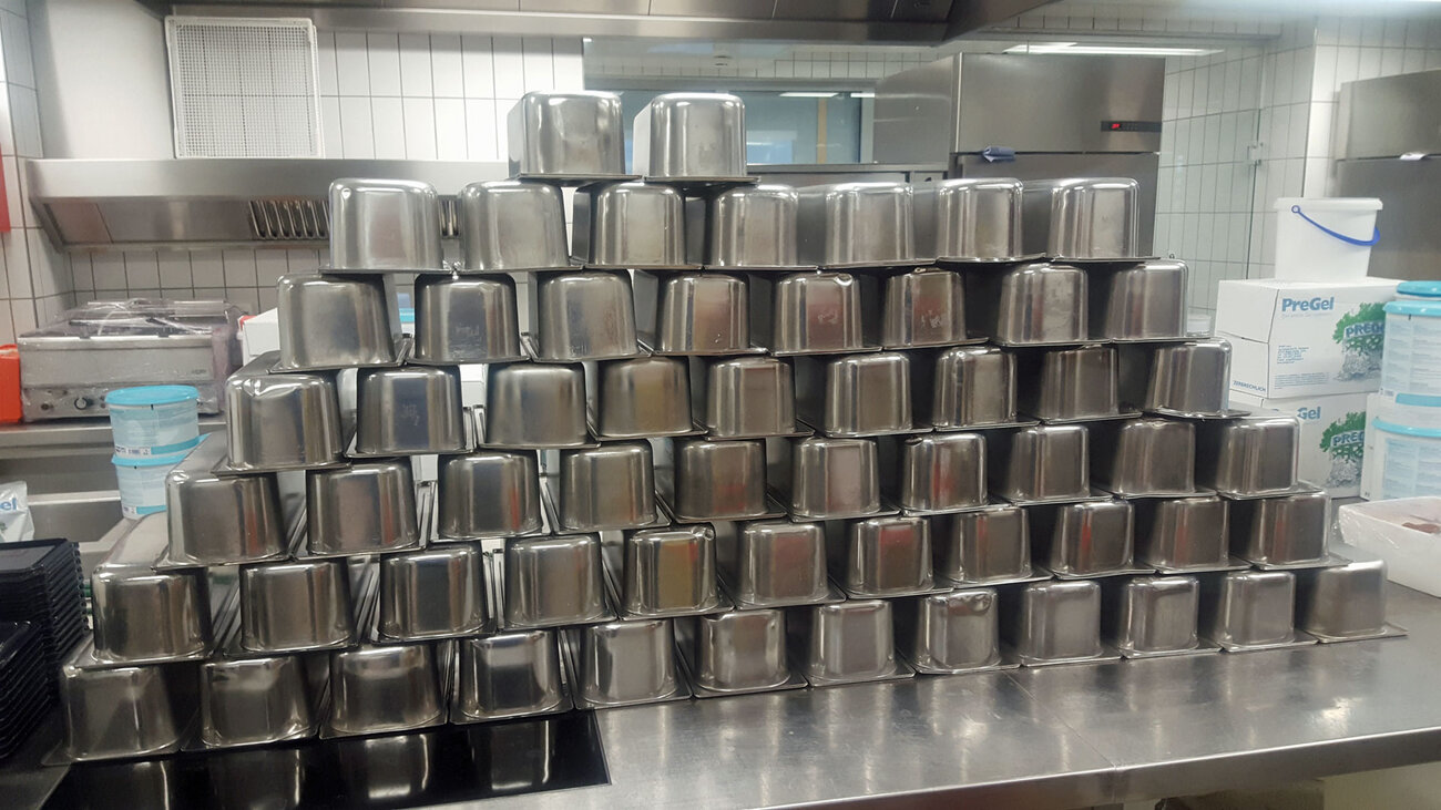 Sein Tag startet mit der Eisverteilung. In der Früh kommen die Restaurantleiter und nehmen die benötigten Sorten mit. Nach abgeschlossener Warenverteilung wird im Lager kurz gecheckt, was noch da ist und was gebraucht wird. Dann geht es schon mit der Produktion los. Was mir sofort auffällt ist, dass Sauberkeit und Hygiene ganz großgeschrieben werden. Dies betont Vladi auch selbst immer wieder und das bemerke ich auch während meines Besuchs. Vor und nach jedem Handgriff wäscht und desinfiziert er sich die Hände.