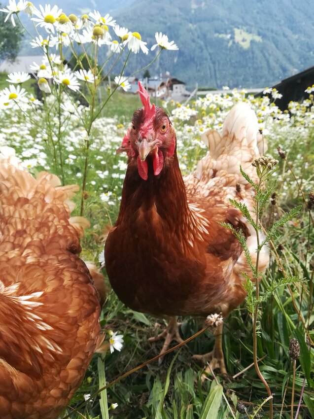 Die frische Bergluft, das Alpenpanorama, die saftigen Wiesen mit ihren Kräutern und Blumen... Was wie eine Szene aus einem Heimatfilm klingt, ist die tatsächliche Kulisse für die Fisser Hühner. Die gackernden Hühner residieren in Fiss auf 1.438 Metern Seehöhe in zwei fixen Hühnerställen mit je 350 bzw. 450 Hühnern.