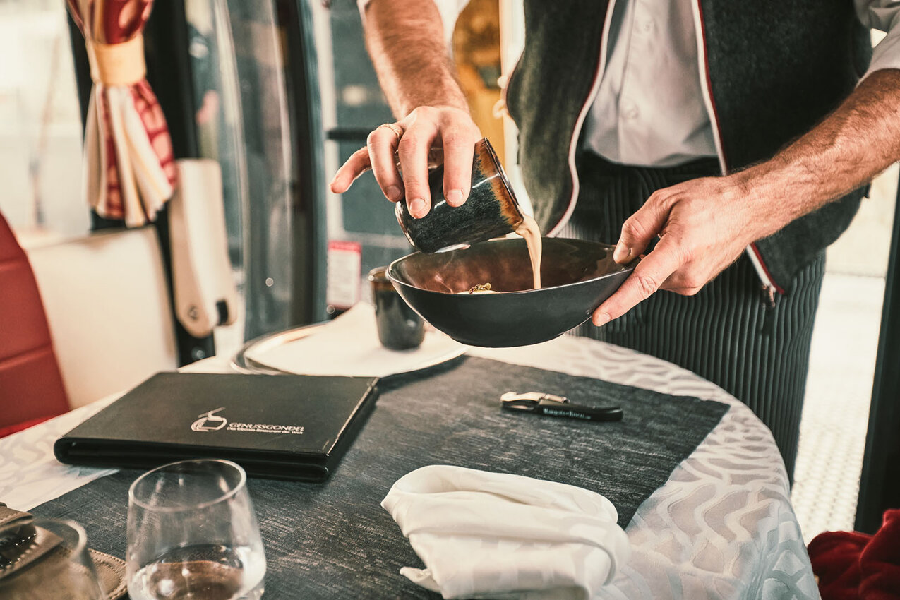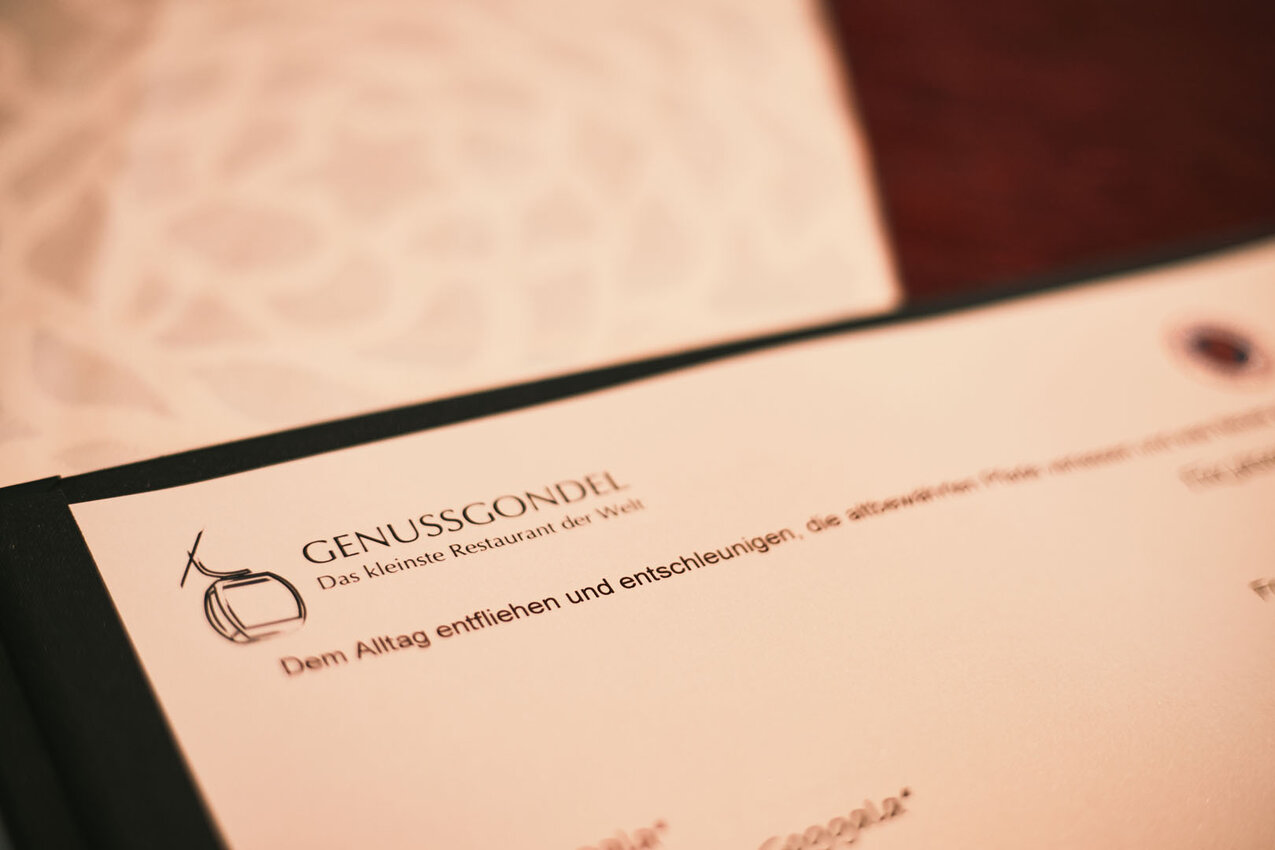 Wir entschieden uns für das 6-Gänge-Mittagsmenü in der schwarzen Genussgondel. Direkt bei der Buchung dieses exklusiven Angebots konnten wir aus MEHREREN MENÜS wählen.