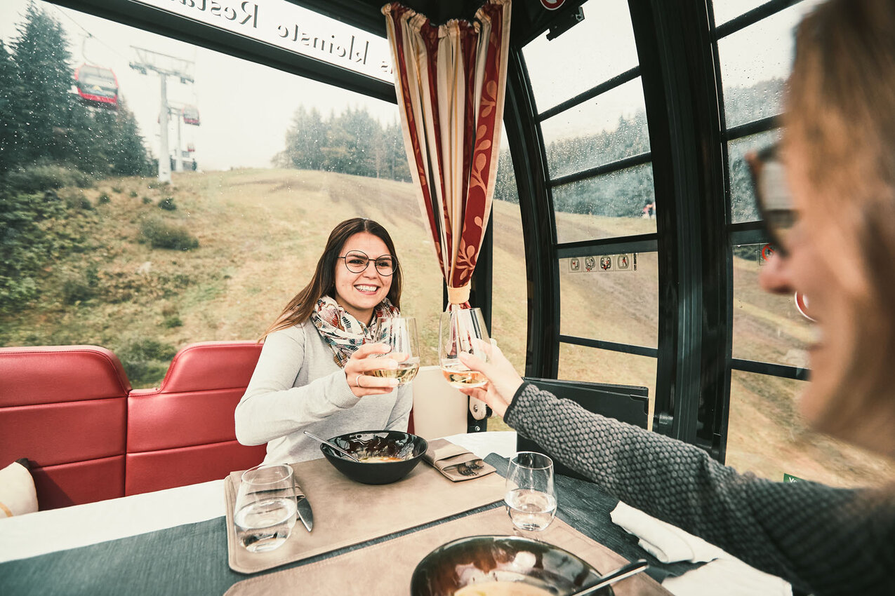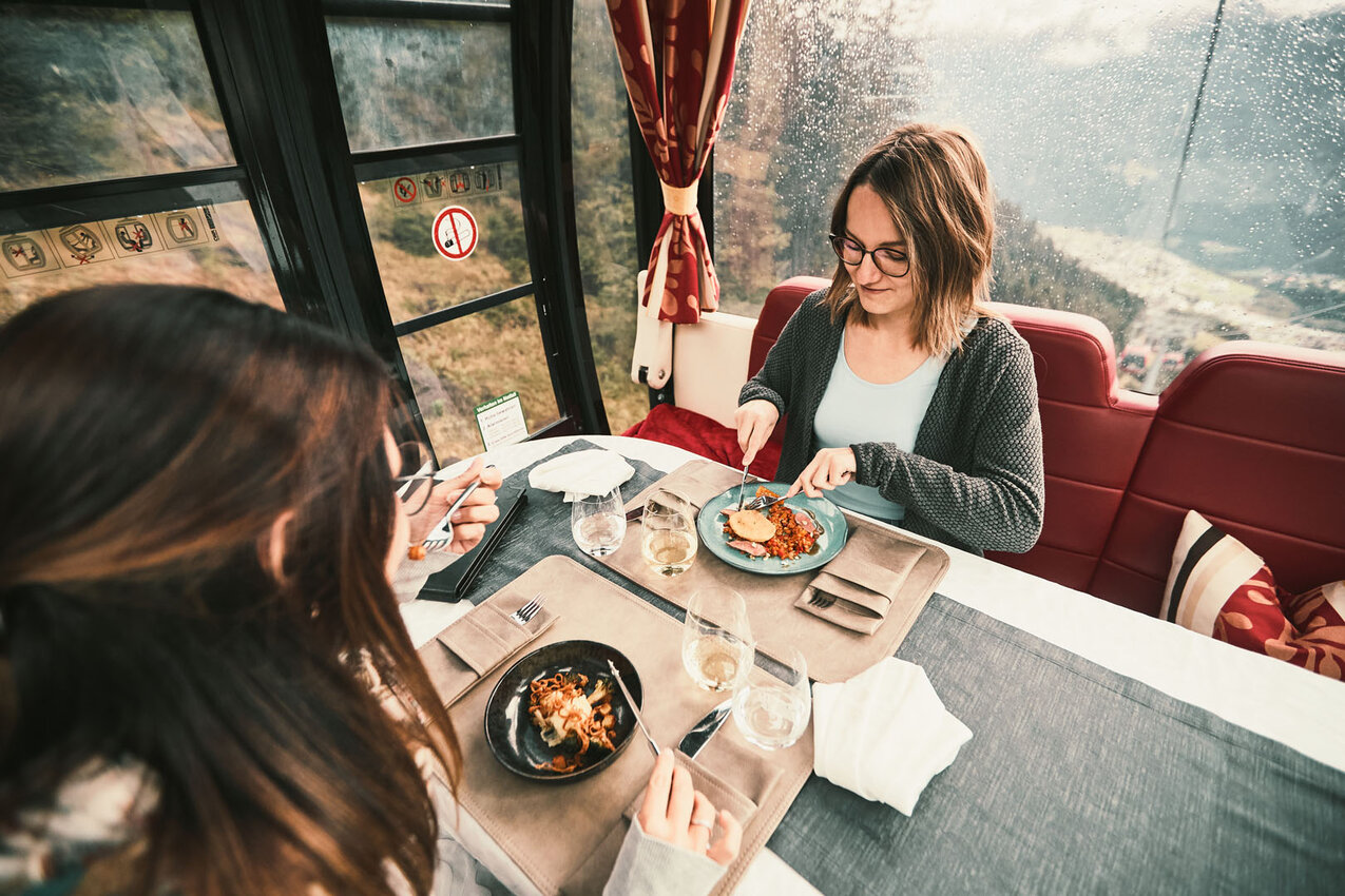 Genau diesen besonderen Ausblick beim Speisen wollten meine Freundin Jasmine und ich uns auf keinen Fall entgehen lassen. Anfang Oktober letzten Jahres hieß es dann für uns: Bitte EINSTEIGEN, die Genussgondel ist da!