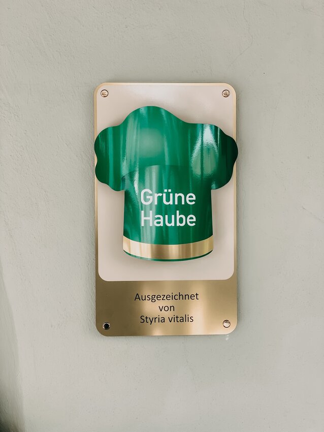 „Die Philosophie der Grünen Haube passt genau zum Haus“, sagt Carina. Das Haus wird in zweiter Generation von ihr geleitet – und die Liebe zur ehrlichen, regionalen Küche wird hier schon lange gelebt. „Das Konzept der Grünen Haube gibt es seit 1990 und kommt ursprünglich aus der Steiermark“, erzählt sie. Die Auszeichnung wird vom gemeinnützigen, unabhängigen Verein Styria vitalis ausschließlich an bio-zertifizierte Restaurants und Hotels verliehen. Das Gütekriterium garantiert, dass Gäste in diesen Betrieben vollwertig-vegetarische Gerichte genießen können, hergestellt aus Lebensmitteln in Bio-Qualität. Damit setzen die Betriebe nicht nur kulinarische, sondern auch gesundheitliche, ethische, regionale und nachhaltig-ökologische Maßstäbe.