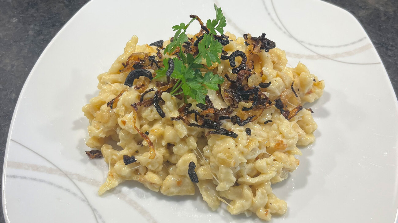 Käsespätzle sind ein Alpen-Klassiker und ein wahres Comfort Food. Am besten genießt man sie zur Stärkung nach einem großartigen Skitag oder einer Wanderung. Auf gemütlichen Almhütten werden dampfende und duftende Spätzle in einer großen Eisenpfanne in der Mitte des Tisches serviert. In Gesellschaft der Liebsten schmecken sie besonders köstlich.