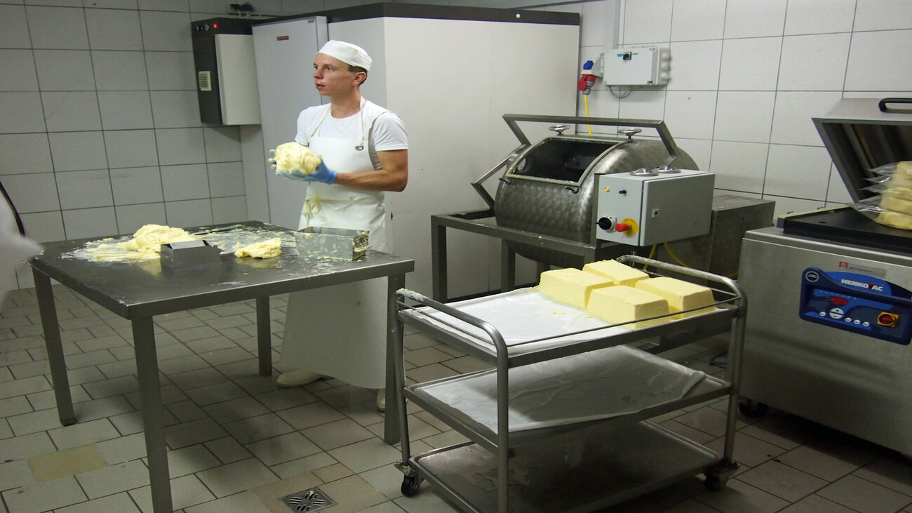 „Während die Hirten mit den Tieren unterwegs sind, machen wir uns an die Produktion von Butter, Milch und Käse. Der Staller sorgt dafür, dass die Tiere nach Ihrer Rückkehr wieder einen sauberen und ordentlichen Stall vorfinden. Im Sommer produzieren wir rund 2.500 kg Butter und 25.000 kg Käse. Des Weiteren sorgen wir zu zweit dafür, dass auch im Haus Sauberkeit und Ordnung herrscht und wir kümmern uns bereits um das Abendessen.“