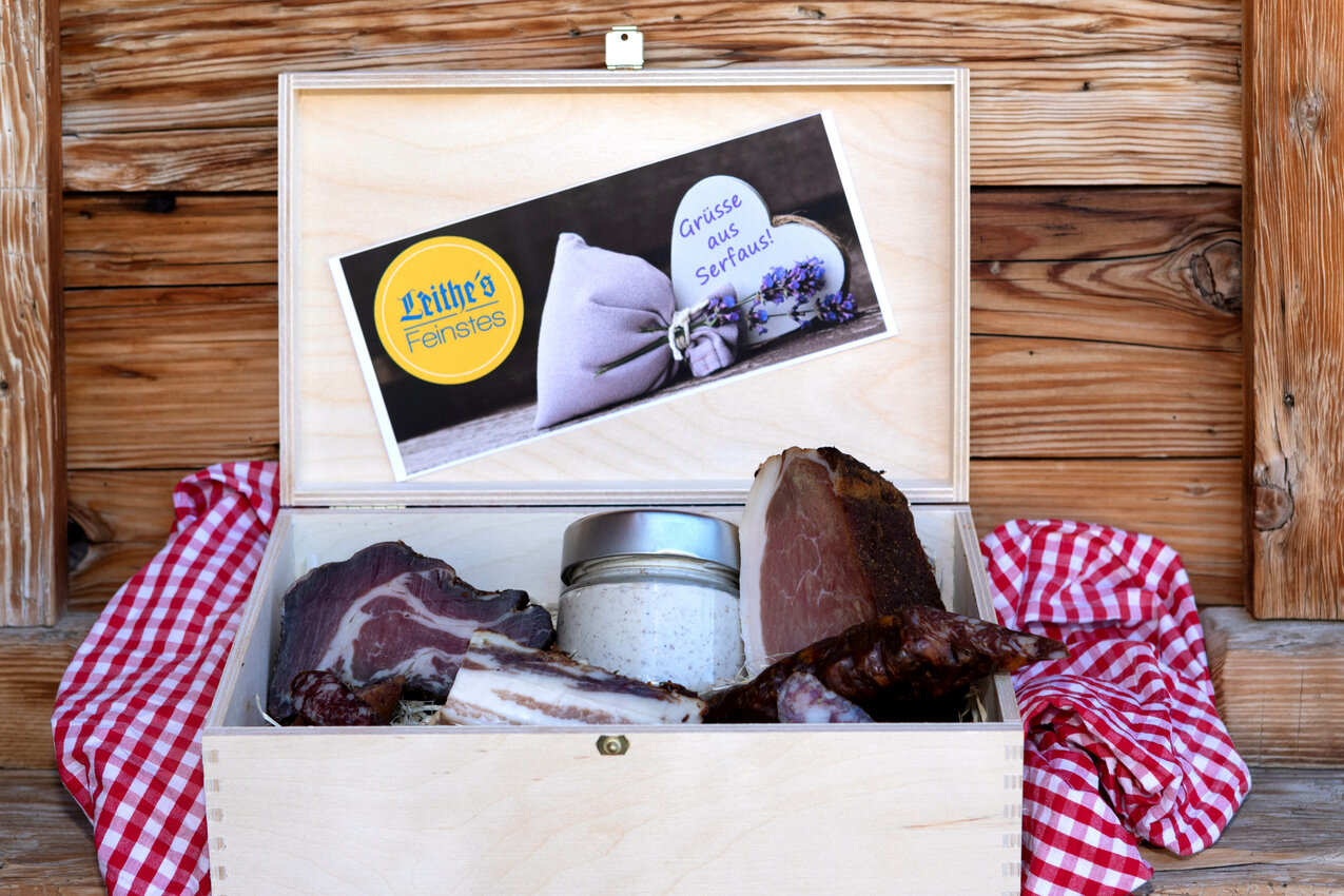 In einem kleinen Shop im Restaurant können die Fleischerzeugnisse gekauft werden. Speck, Osso Collo oder Salami? Du hast die Qual der Wahl. Die Mitbringsel können den Liebsten in einer kleinen „Räucherkiste“ überreicht werden. Zudem können leckere Gerichte mit den besagten Spezialitäten aus der Karte gewählt werden. Wie wäre es mit Serfauser Bünderfleisch mariniert mit einer Bergkräutervinaigrette oder einer zünftigen Brettljause?