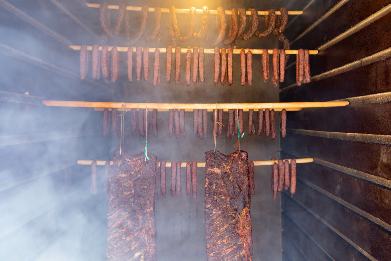 Nach zahlreichen Gesprächen mit hiesigen Metzger- und Räuchermeistern, unzähligen Lesestunden in Fachliteratur und Experimenten in der Küche konnten beide ihren Räuchertraum verwirklichen. Bei der Herstellung der Delikatessen gibt es zwei wichtige Parameter: Luftfeuchtigkeit und Temperatur. Die Kulinarik-Köpfe haben sehr viel ausprobiert und herumgetüftelt. Schließlich soll das Ergebnis perfekt werden. An dieser Stelle: Ein hoch auf die Geschäftsführung, die den Experimentierfreudigen den notwendigen Spielraum gegeben hat.