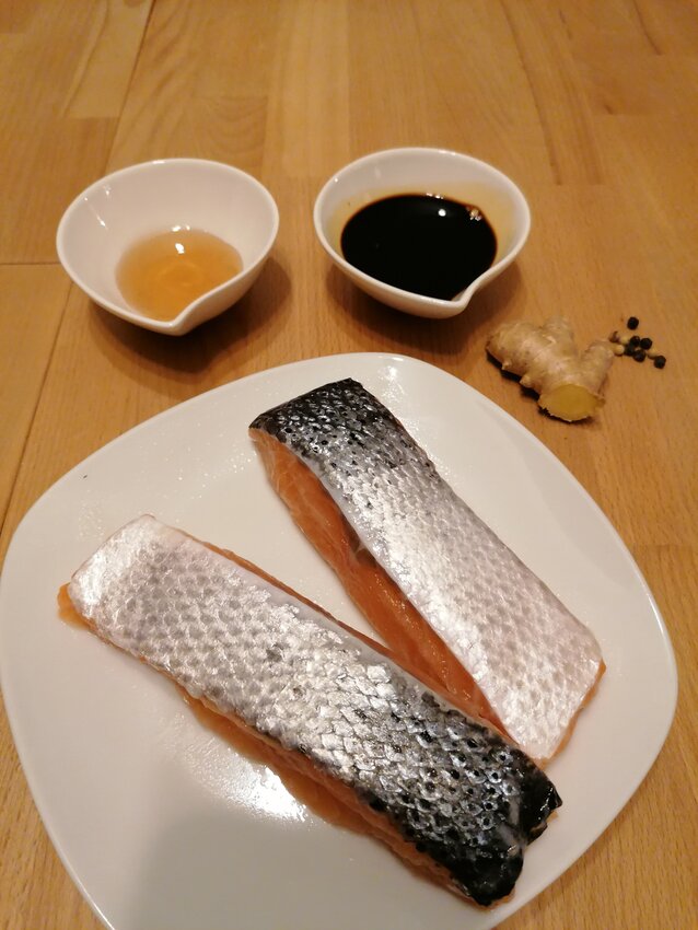 Tipp: Ideal wäre, den Fisch samt der Gewürzmasse zu vakuumieren. Wenn die Luft aus dem Beutel gesaugt wird (Unterdruck), können die Gewürze besser in den Fisch eindringen.