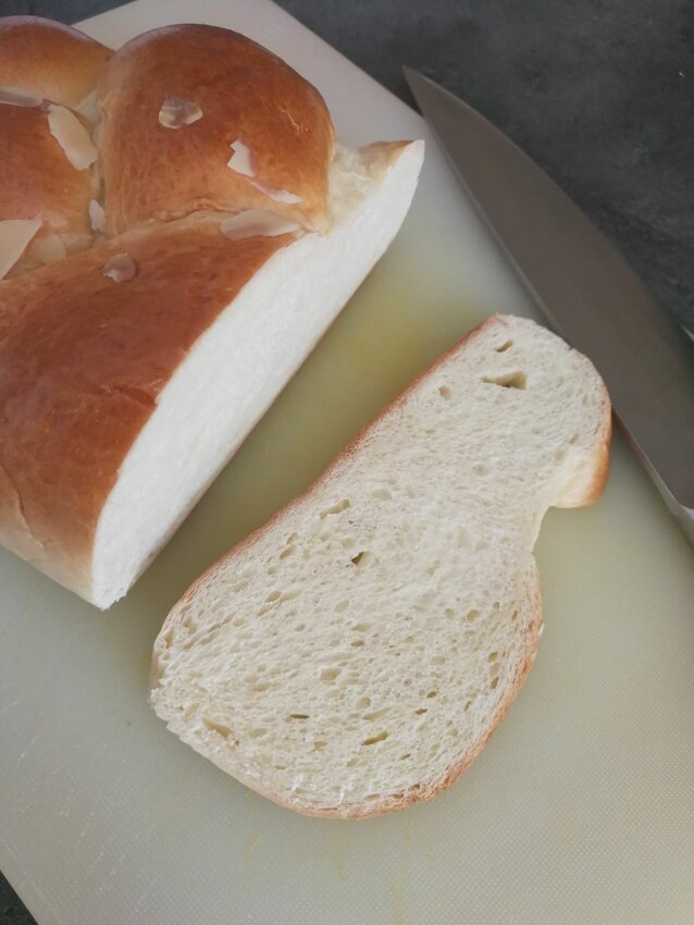 Altbackenes Weißbrot / angezogener Milchzopf in Scheiben