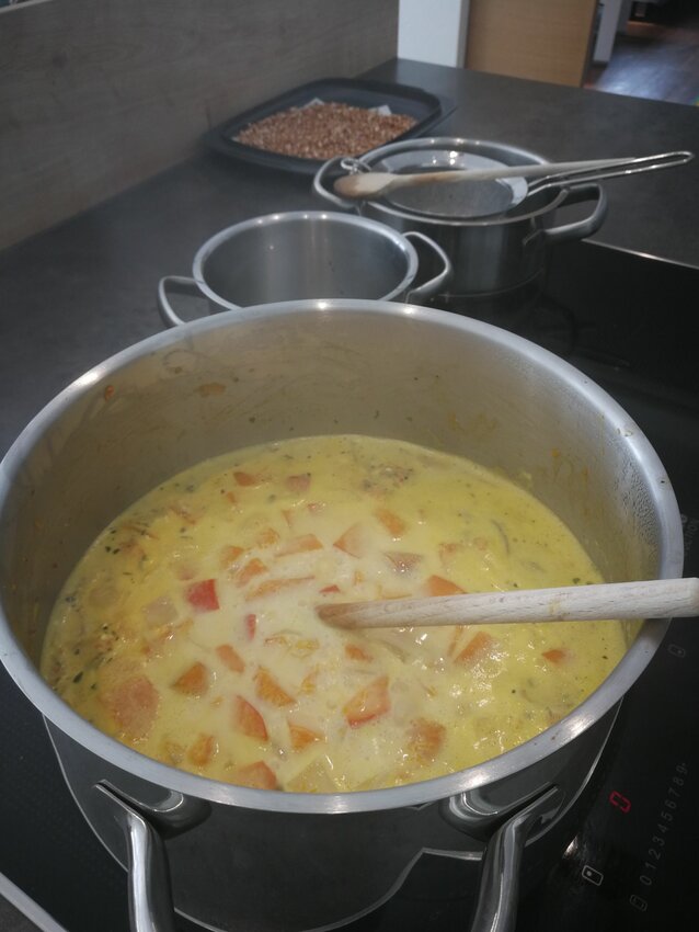 Tipp: Bei dieser Suppe bereite ich gerne immer eine größere Menge zu, da sie sich sehr gut zum Einfrieren eignet. Also auch keine Scheu bei größeren Kürbissen.