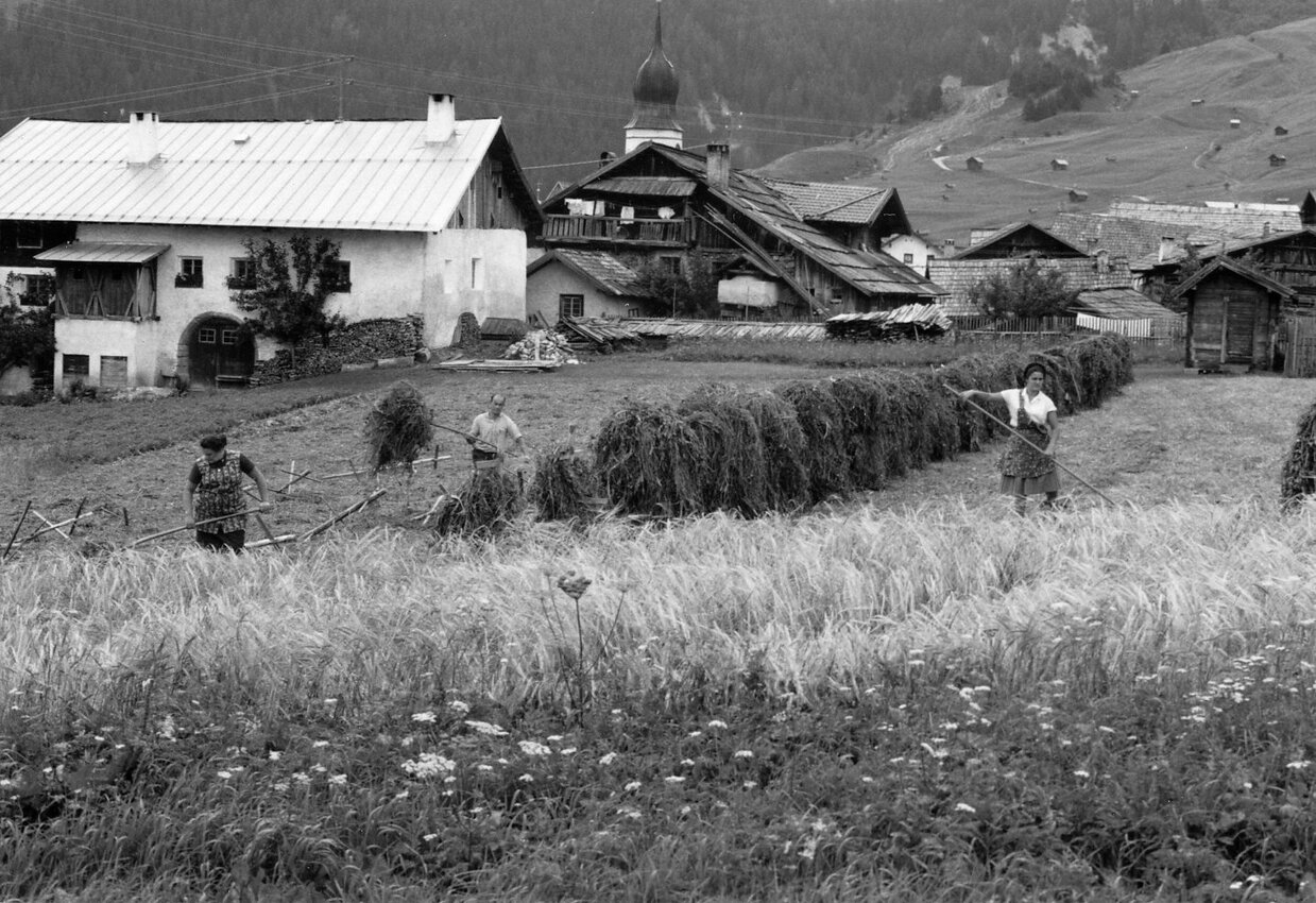 Kasmuas aß man nicht direkt auf dem Berg. Eine BRENNSUPPE gabs da. Meine Mutter machte zuhause in der Pfanne einen Brenni, also eine Mehleinbrenn. Am Berg setzte sie sich dann an eine Kochstelle und gab Wasser hinzu. Getrunken wurde auf der Bergmåhd schwarzer KAFFEE. Wer eine ZIEGE hatte, nahm diese mit auf den Berg. Dann gab’s sogar Milchkaffee. Manchmal schliefen die Bauern auch direkt am Berg: im Heustadel, im PILLA. Am ersten Tag übernachteten sie dann zuerst beim Nachbarn, der schon etwas Heu im Stadel hatte.“
