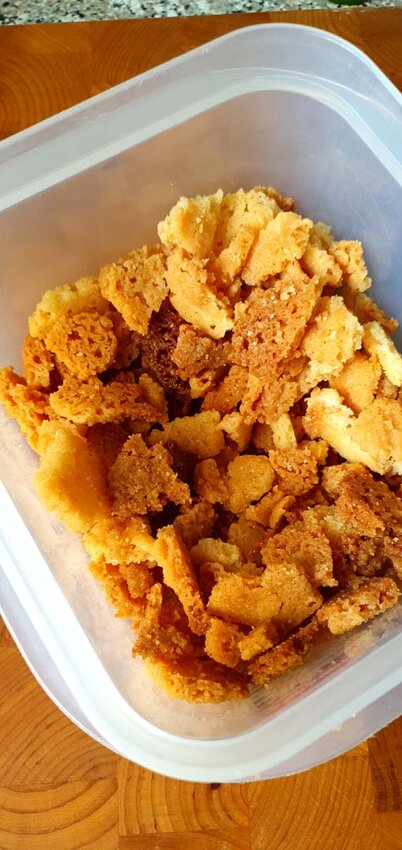 Brot würfeln (1x1 cm) und im vorgeheizten Backofen bei 180° C ca. 10 min goldbraun backen.