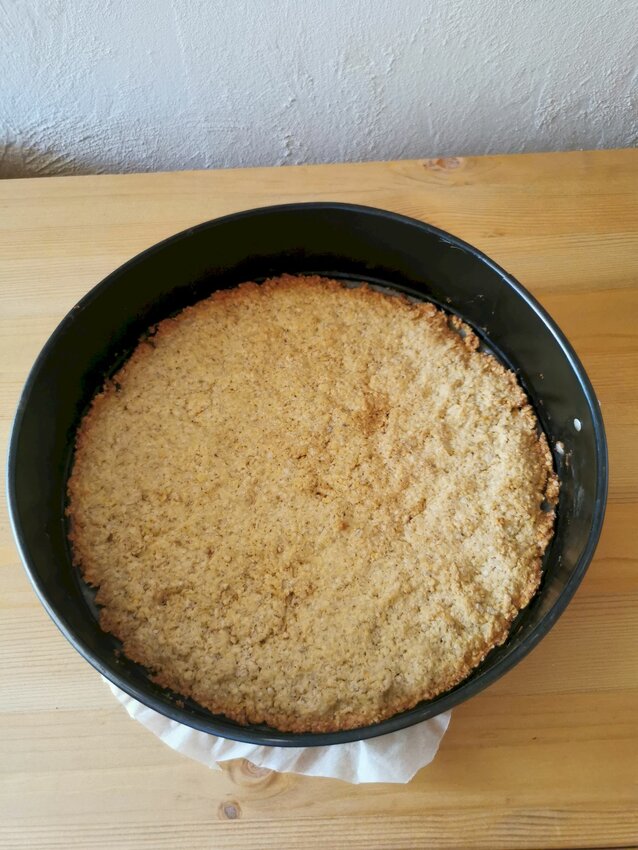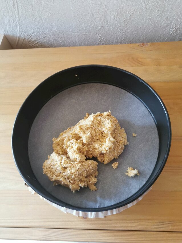 5. Die Creme darf nun auf dem gebackenen Boden Platz nehmen. Anschließend zum Festwerden für etwa 45 Minuten kaltstellen.