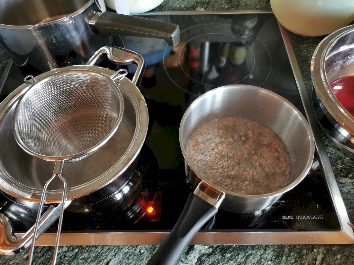 Zudem hält sich die wunderschöne rosa Farbe. Schalen für den Sud aufbewahren.