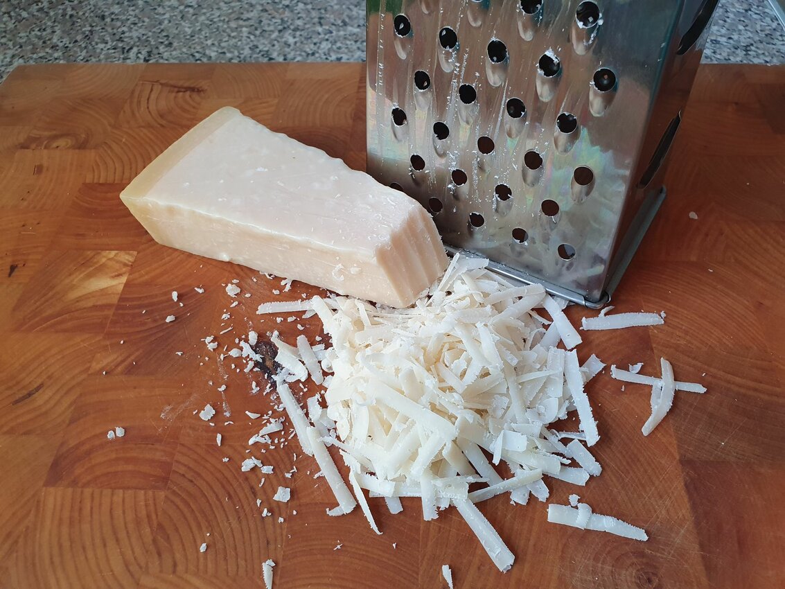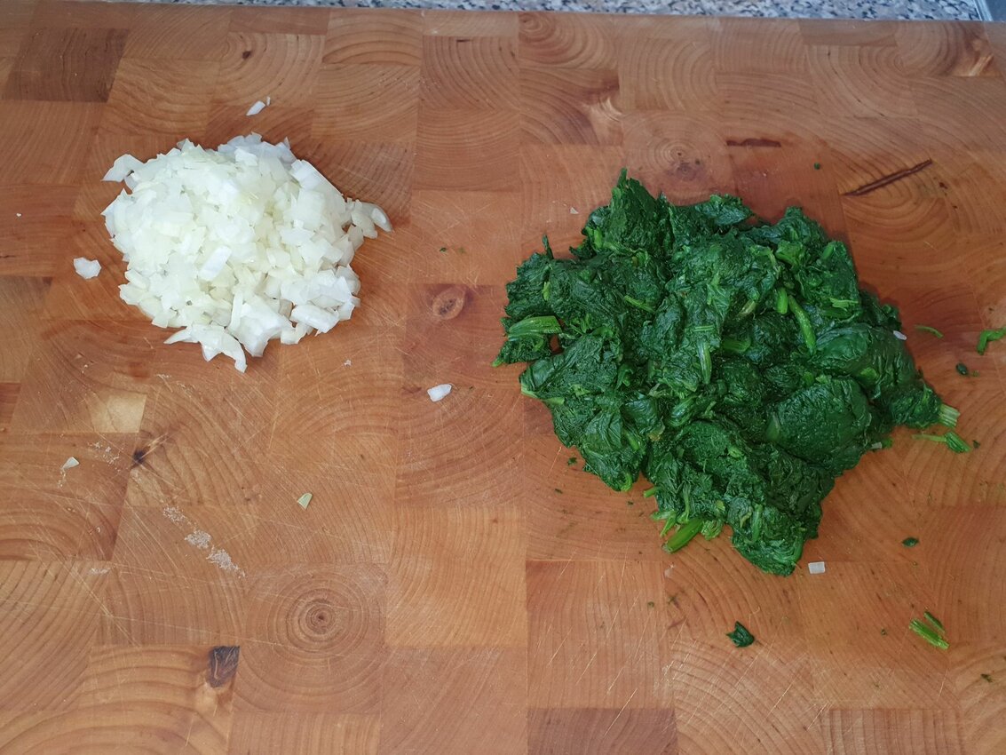 Den Spinat abkühlen lassen und nach kurzer Zeit den grob gehobelten Parmesan und den Topfen gut untermischen.