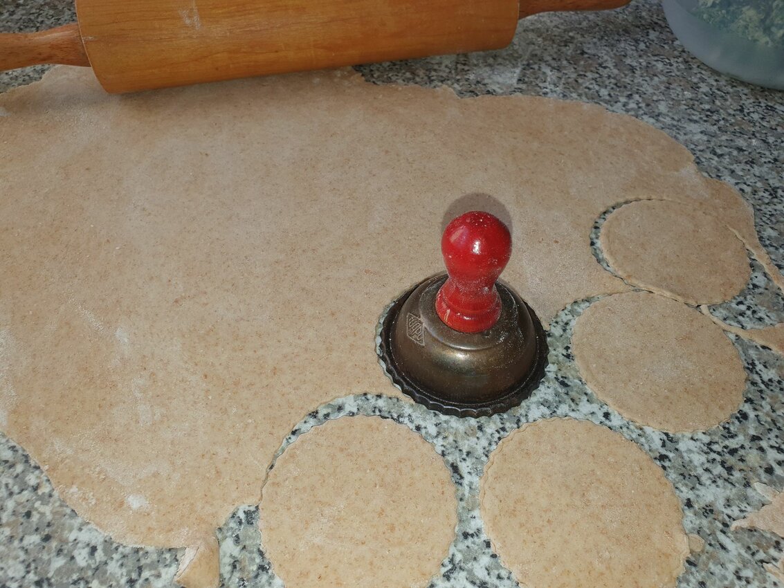 Nun den Teig mit einem Ausstecher (ca. 6 cm – 9 cm Durchmesser) ausstechen.