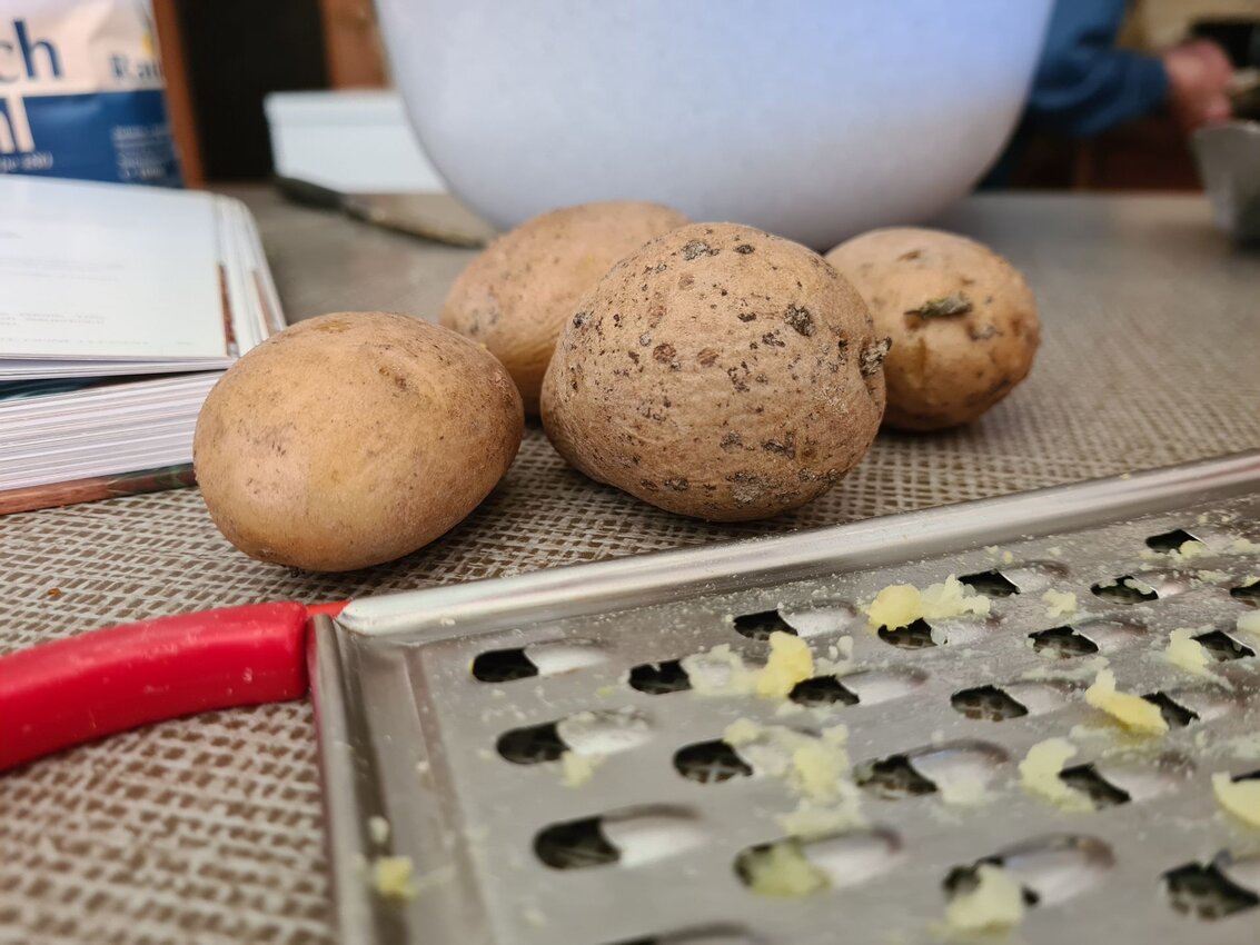 - Koche am Vortag die Erdäpfel. Es ist wichtig, dass du bei diesem Gericht keine frischen Erdäpfel verwendest. Diese enthalten viel zu viel Flüssigkeit.
