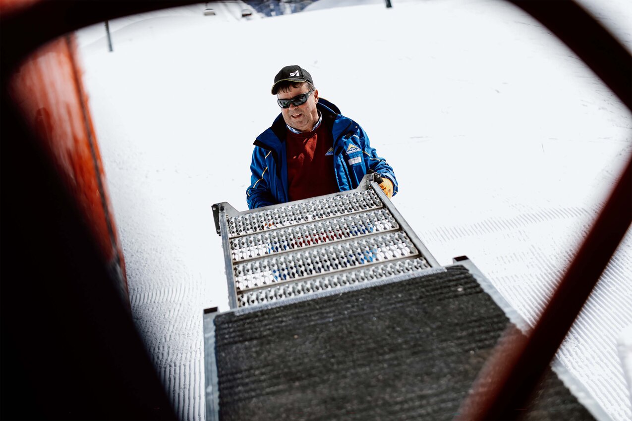 Was er an seinem Job am liebsten mag? „Ich bin gern bei den Leuten“, sagt er. Lange war er auch als Pistenpräparierer unterwegs, aber irgendwann „hat mir das keinen Spaß mehr gemacht“, erzählt er. Ein paar Jahre lang hat er dann als aktiver Fahrer ausgesetzt und war als Vorführer für Pistenmaschinen in Italien engagiert. „Ich bin ganz fanatisch gewesen“, sagt er in seinem Südtiroler Dialekt.