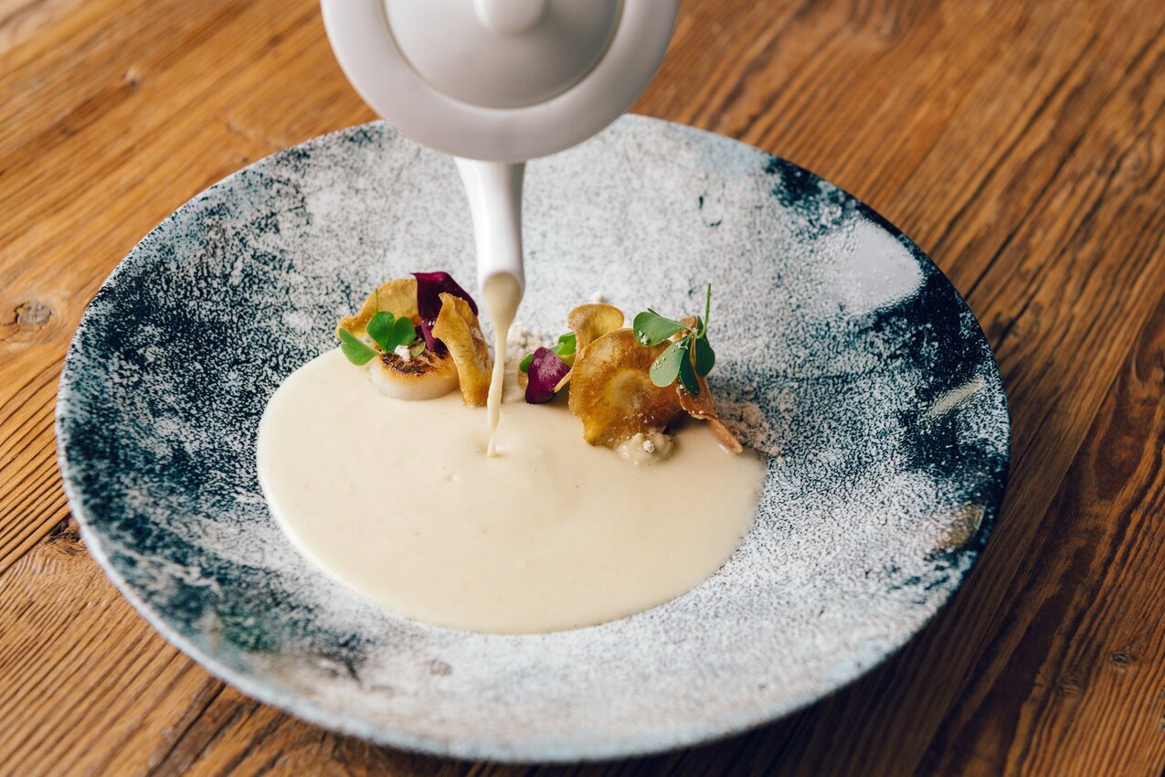 Dieser Spruch ist allseits bekannt und geht auch Lukas ganz leicht von den Lippen. Sein Credo lautet nämlich: Nimm nur wenige Komponenten und setze sie immer wieder neu in Szene! Die meisten seiner Gerichte bestehen aus drei Zutaten. Zu wenig? Nein. „Wir kochen beispielsweise mit Sellerie fünf Gerichte und alle schmecken anders. Das ist mir sehr wichtig. Auch die komplette Verarbeitung des Produktes steht immer im Vordergrund.“ In diesem Punkt schwimmt er mit Meisterkoch Paul Ivic aus Serfaus definitiv auf der gleichen Wellenlänge.