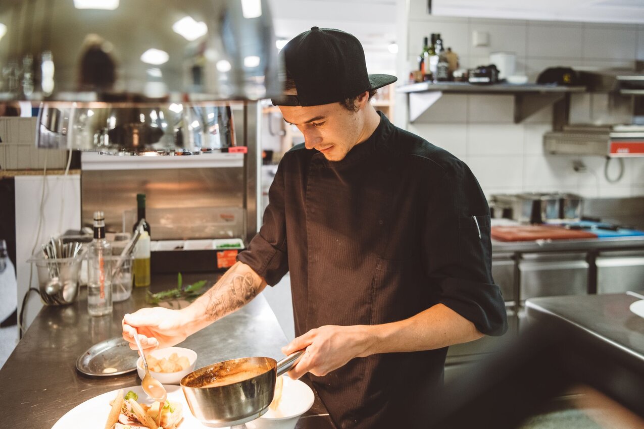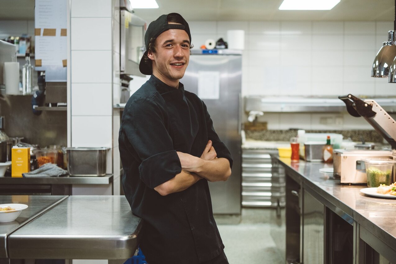 Das schwarze Cappy lässig verkehrt herum getragen, eine schicke Kochschürze umgeschnürt und das Wichtigste: ein sympathisches Grinsen im Gesicht. So präsentiert er sich mir im „Köhles Kulinarium“ in Serfaus. Stelle ich mir so einen Küchenchef mit zwei Hauben in der Tasche vor? Zugegeben: Nicht ganz. Lukas wirkt auf mich cool, jung und kreativ - keinesfalls laut oder eingebildet.