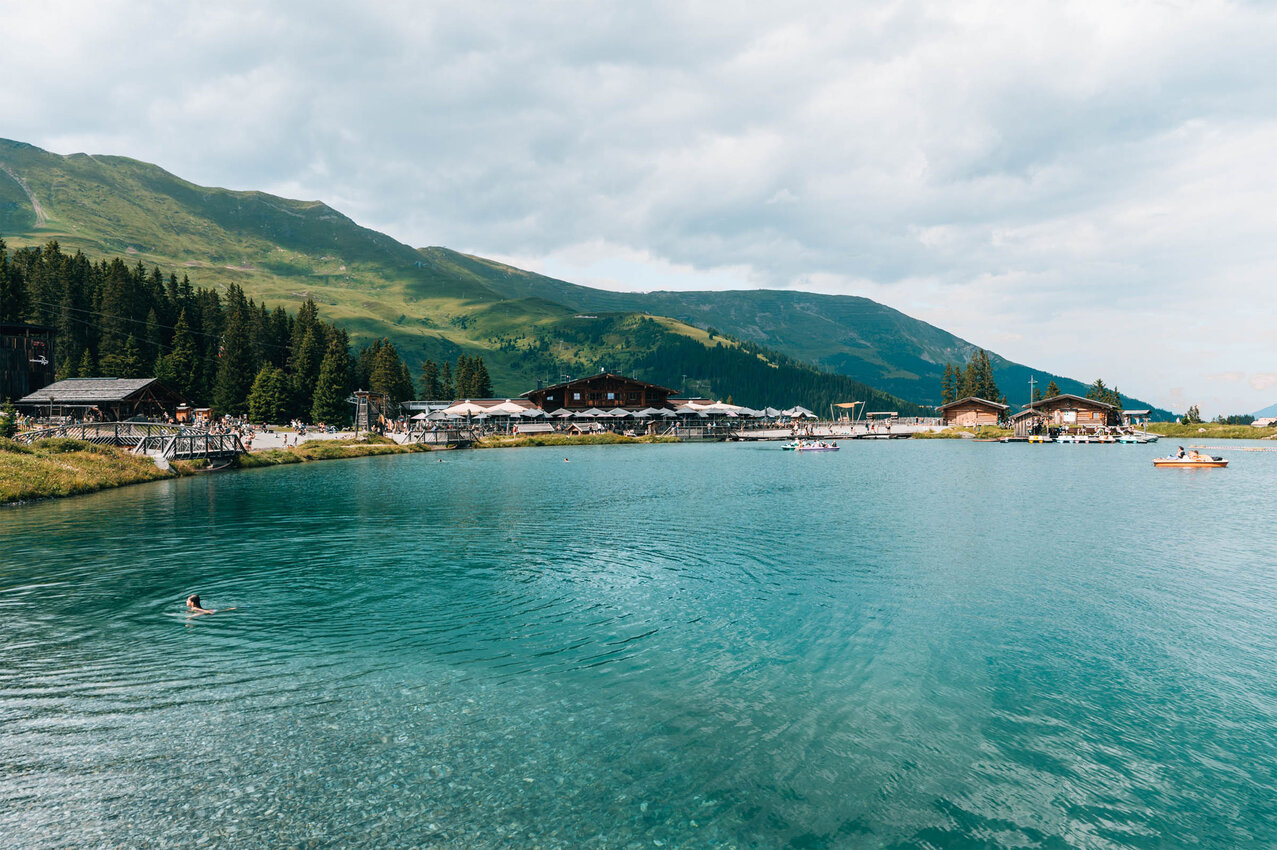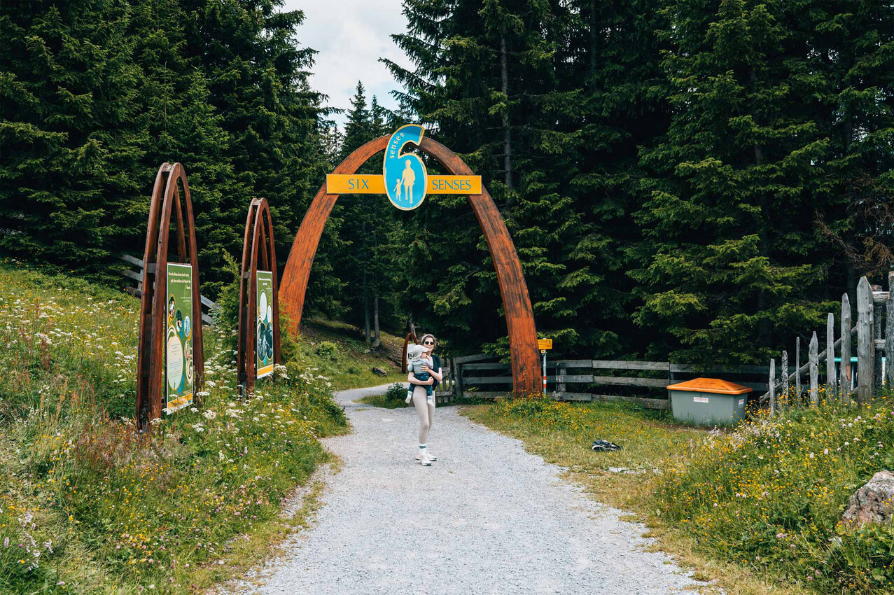 Ebenfalls richtig gut gefallen hat uns der Six-Senses-Weg. Wie es der Name schon verrät, begibst du dich hier auf einen Genussweg, der auf kreative Art und Weise die Sinne fordert. Der Weg verläuft ebenfalls leicht bergab, sodass er auch für Familien mit Kindern bestens geeignet ist. Auf dem Weg kommst du außerdem bei einem der schönsten Plätze in Serfaus-Fiss-Ladis vorbei, dem traumhaften Högsee, der an heißen Sommertagen zum Planschen einlädt.