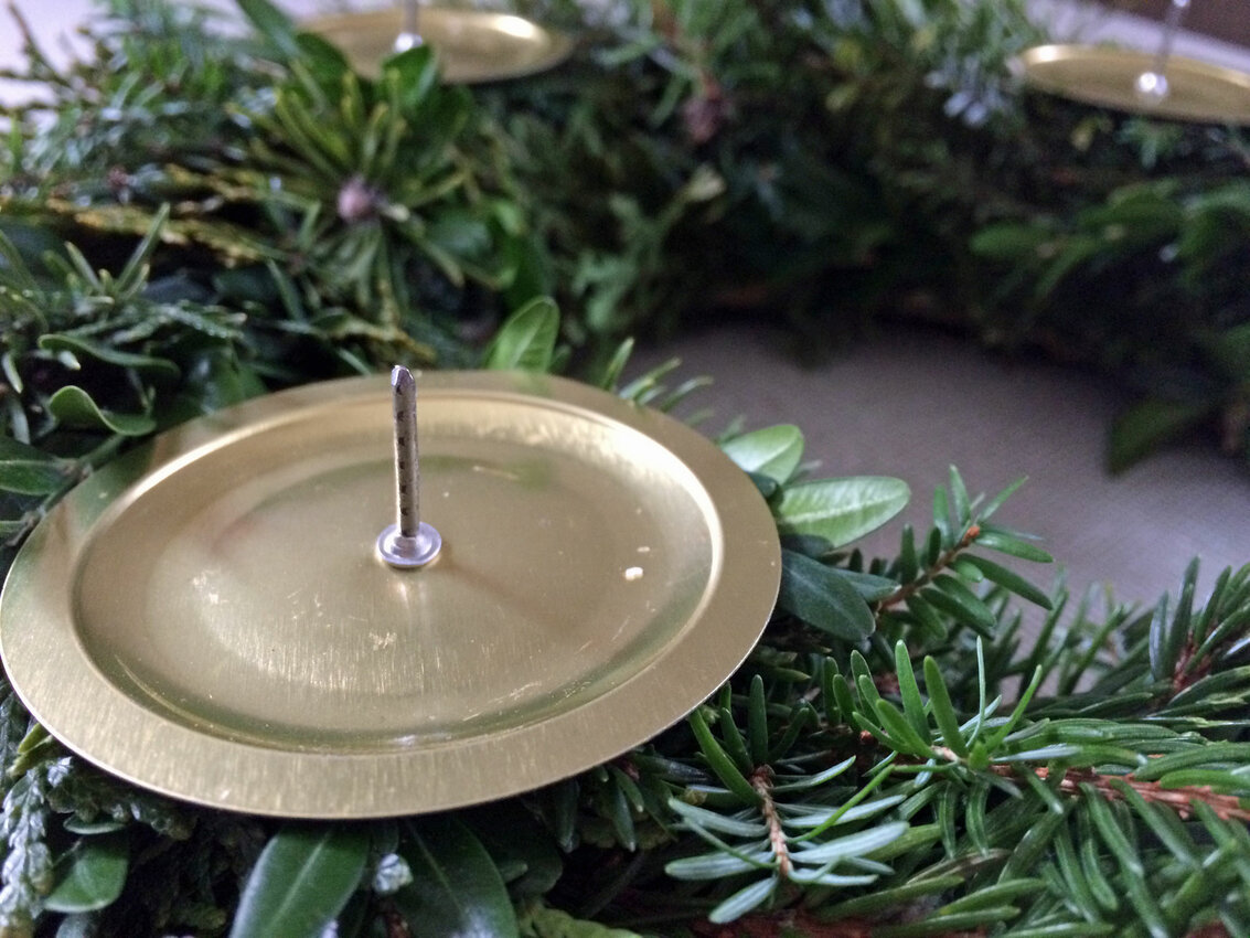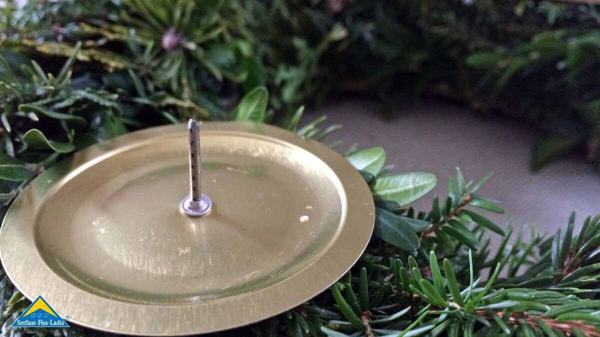 Das "Gerüst" vom Adventkranz ist fertig, aber natürlich fehlen unserem Kranz noch die vier Herzstücke. Ich stecke die Kerzen auf die Halterung und befestige diese dann auf dem Adventkranz. Auch hier sind der Kreativität nahezu keine Grenzen gesetzt. Ob vier gleiche Kerzen oder vier unterschiedliche, das ist jedem selbst überlassen. Hier gibt es die verschiedensten Ausführungen und jede einzelne hat das gewisse Etwas.