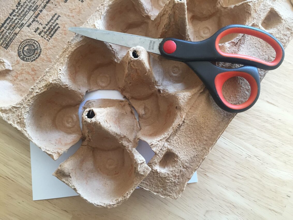 Den Hühnerkamm haben wir aus rotem Tonpapier ausgeschnitten und mit einem kleinen Schnitt auf den Kopf bzw. die Spitze der Eierschachtel gesteckt. Der Schnabel wird aus gelbem Papier gefertigt und ganz einfach aufgeklebt. Wer möchte, der kann seinem Huhn auch noch aus rotem Tonpapier einen Lappen ausschneiden und unter dem Schnabel befestigen.