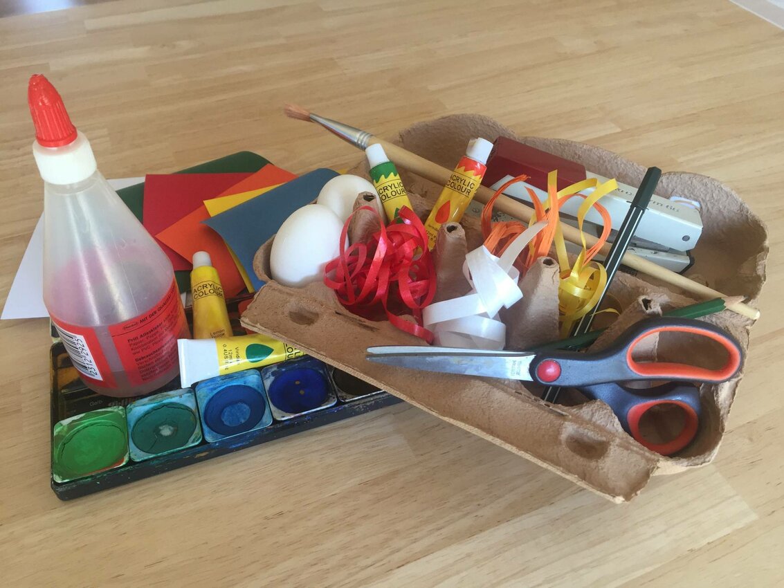 Praktisch: Alle Materialien für die lustigen Hühner hat man im Normalfall daheim. So kann es mit dem Bastelvergnügen gleich losgehen!