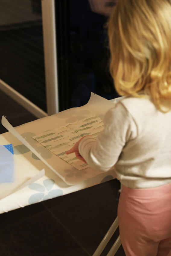 Nun legst du eine Lage Backpapier oben drauf und bügelst vorsichtig auf zweithöchster Stufe.