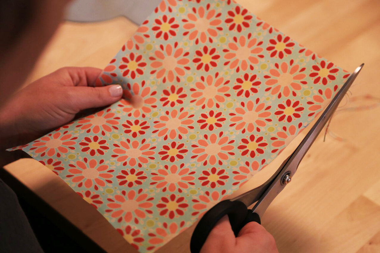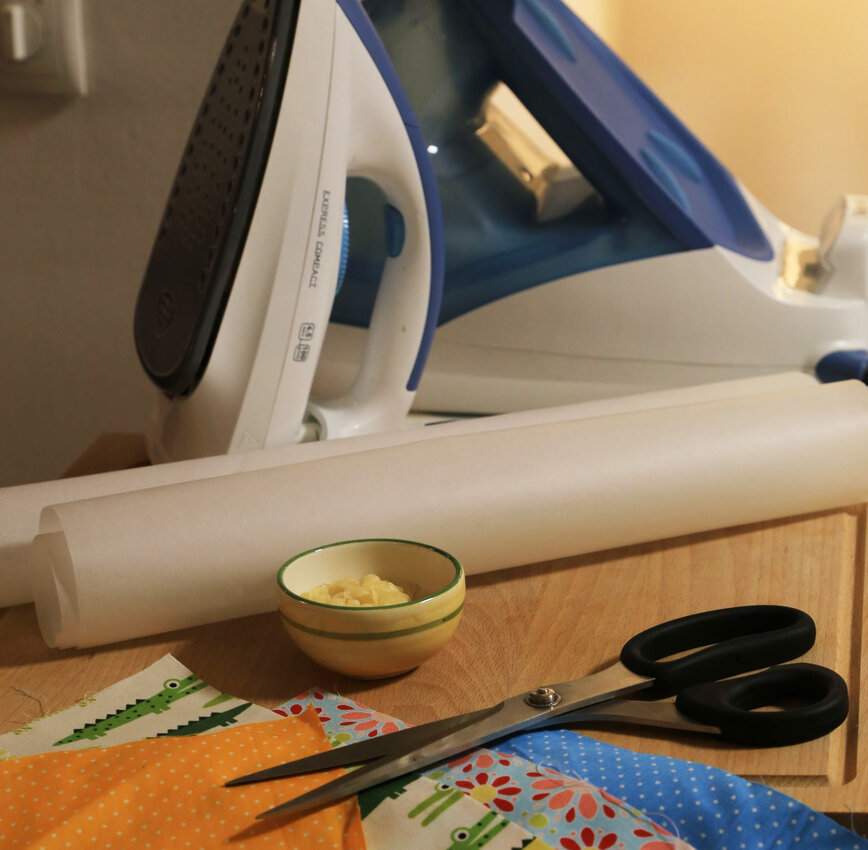Ist das Wachs vollständig geschmolzen, dann kannst du ruhig mit etwas Druck bügeln. Mit einer Zickzackschere verleihst du