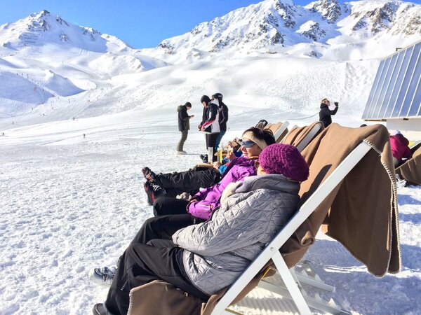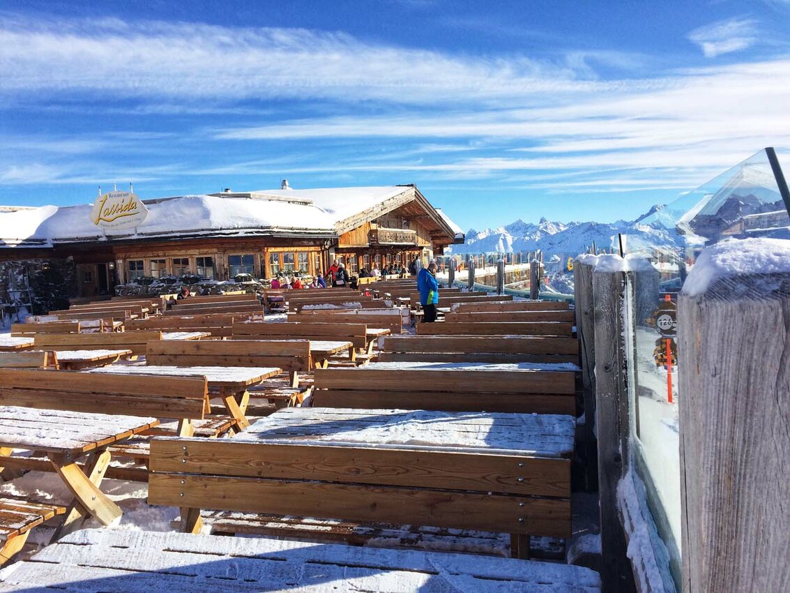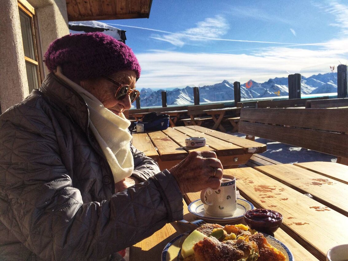 Der höchste Punkt, zu dem Fußgänger in Serfaus bequem gondeln können, ist die Bergstation der Lazidbahn, die auf rund 2.351 Meter Seehöhe wie eine Königin über dem Dorf thront. Das „Lassida“ an der Bergstation lockt mit seiner rustikalen Atmosphäre, dem bunten Angebot an regionalen und internationalen Schmankerln und vor allem mit seiner großen Sonnenterrasse zahlreiche Sonnenanbeter auf den Berg. Mit über 2.000 Sonnenstunden im Jahr liegen die drei Schwestern Serfaus, Fiss und Ladis in Sachen Winterbräune übrigens ganz weit vorne. Auch meine Oma und ich wurden mit reichlich Sonnenstrahlen versorgt.