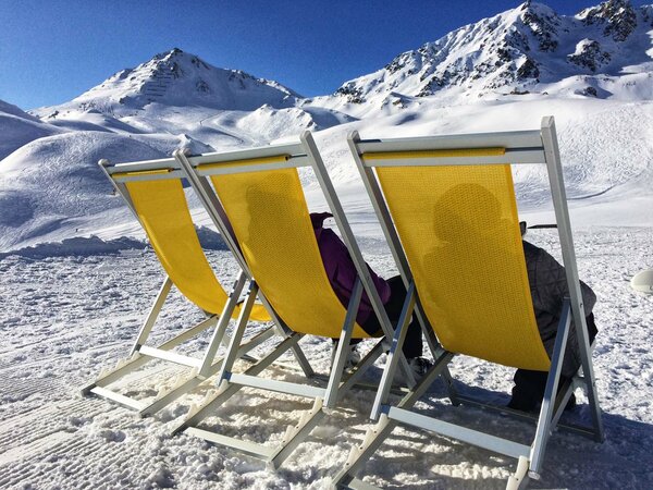 Nachdem wir uns auf der Terrasse der Skihütte Masner mit Köstlichkeiten stärkten, machten wir es uns auf den Liegestühlen unterhalb von ihr gemütlich. Hierfür wird eine Gebühr verlangt. Das sonnige Plätzchen mitten im Skigebiet gehört dem Sonnenanbeter dann für den kompletten Tag. Also Zeit genug für grenzenlose Entspannung. Meine Oma machte eine gute Figur auf der Liege und war entspannter denn je.