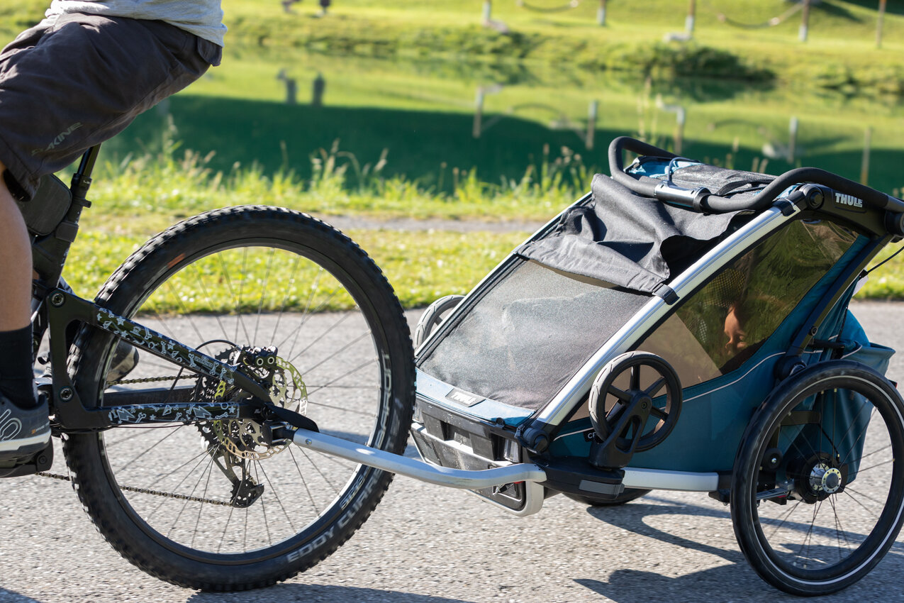 Empfehlenswert ist zudem, nicht nur den Anhänger sondern auch das E-Bike bei den Sportgeschäften vor Ort zu leihen. So sind Bike und Anhänger mit Sicherheit ein STARKES TEAM und es gibt keine bösen Überraschungen. Über beispielsweise eine zu kurze Hinterachse, an der du die Kupplung befestigst, musst du dir also keine Sorgen machen. Hinweis: Im Bikepark Serfaus-Fiss-Ladis gibt es keine Fahrradanhänger zu leihen.